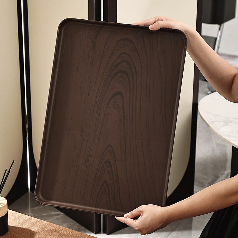 小托盘长方形茶盘酒店水杯杯子收纳盘茶具置物盘樱桃木餐盘仿木纹
