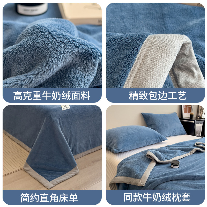 无印良品牛奶绒床单单件珊瑚绒毛绒冬季加厚毛毯宿舍单人被单加绒