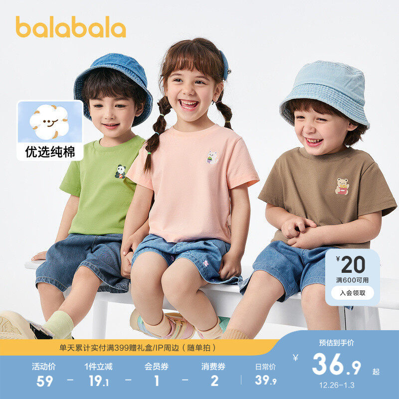 巴拉巴拉童装儿童短袖t恤女童新款夏装男大童纯棉上衣宝宝内搭潮