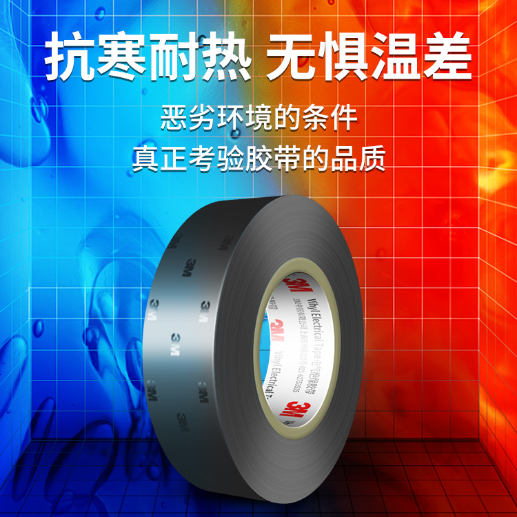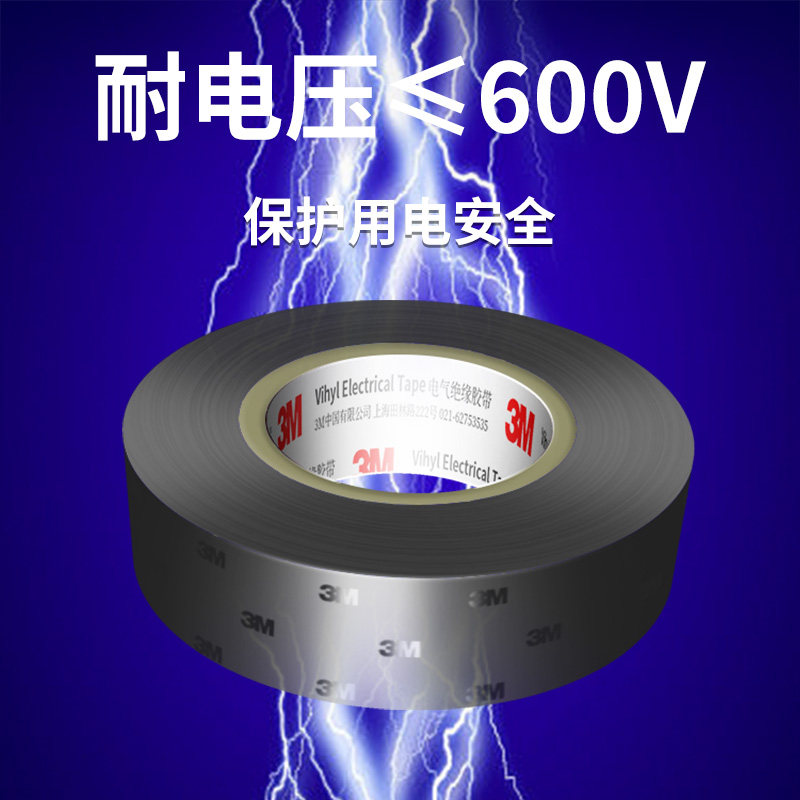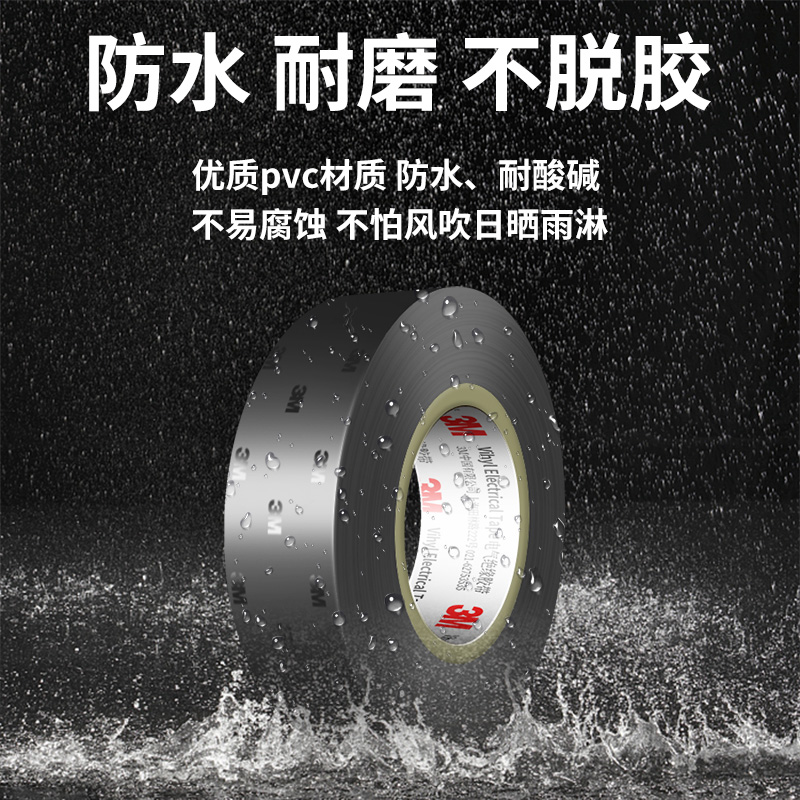3m黑色pvc电工加宽绝缘胶带1712户外防水黑色强力高压耐高温专用塑料胶带收纳电工专用超薄沾胶带