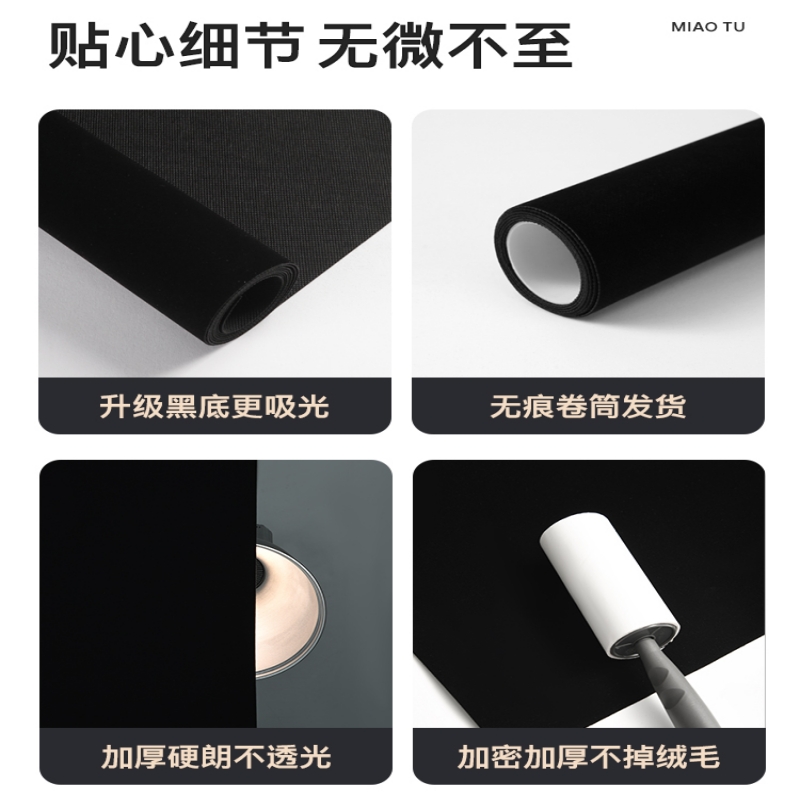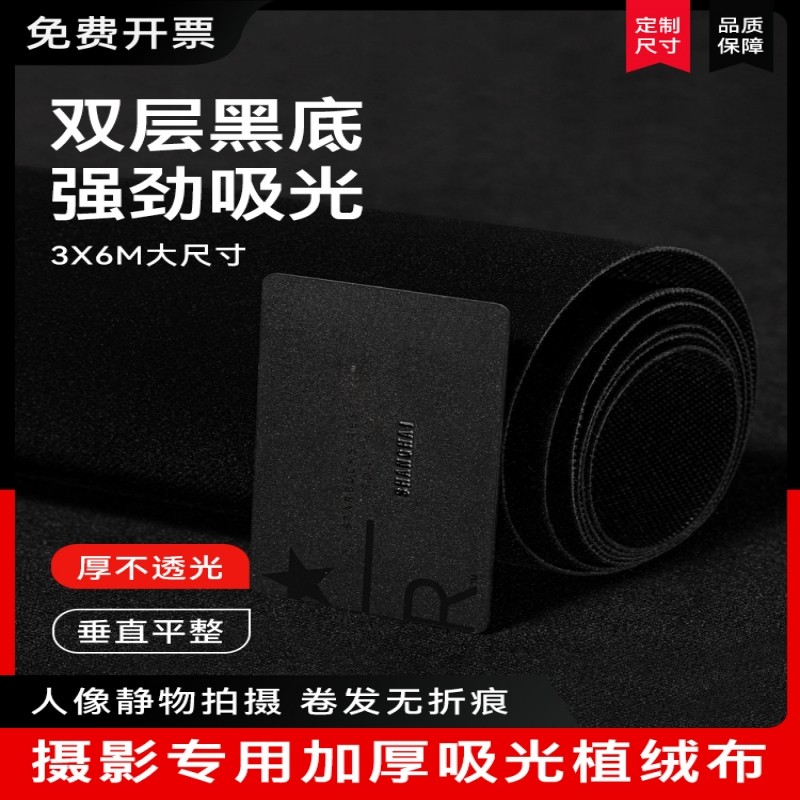 摄影黑色植绒吸光布网红拍照背景布拍摄直播抠像布不反光黑绒幕布