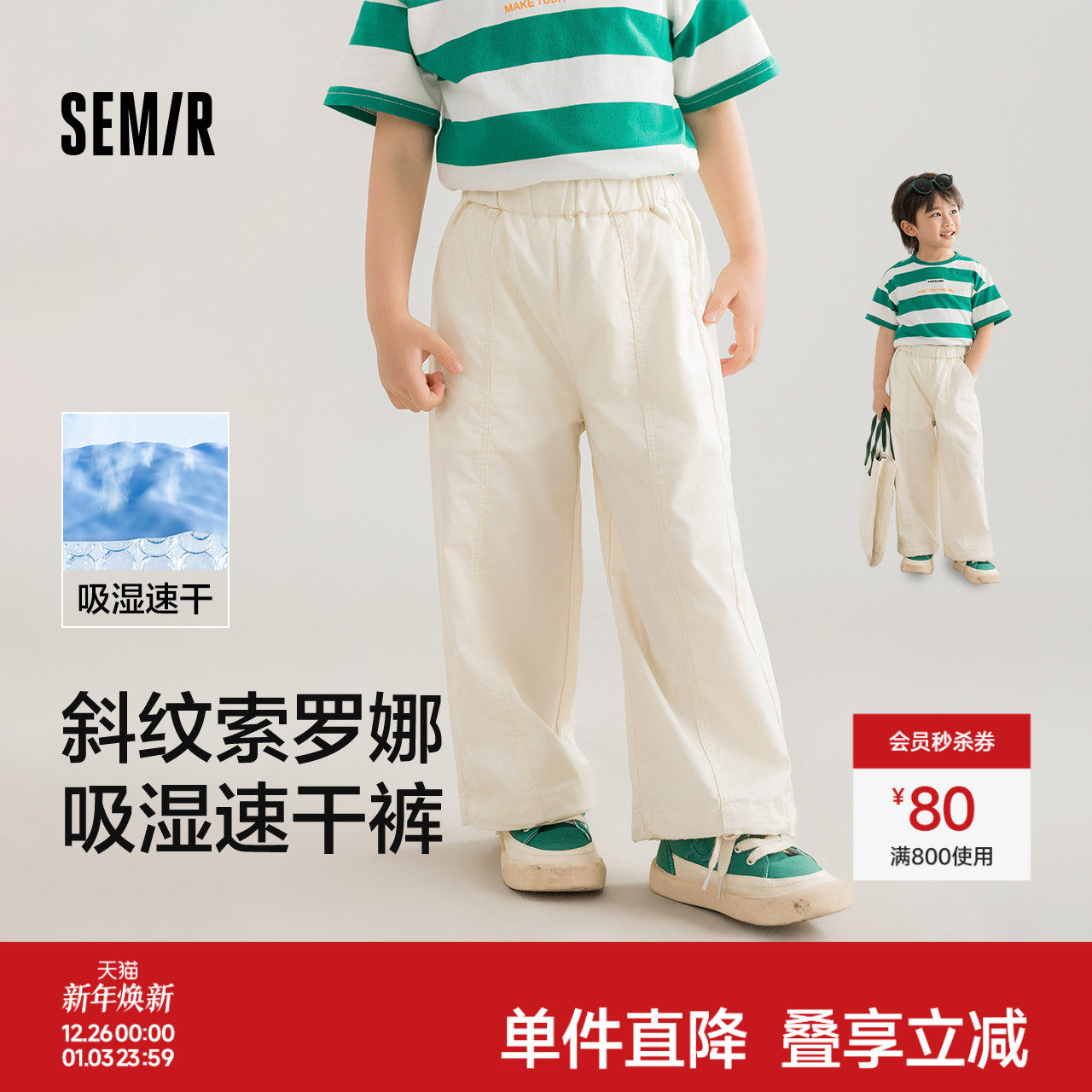 森马儿童长裤吸湿速干运动裤凉感纯色宽松直筒裤夏装男童女童裤子