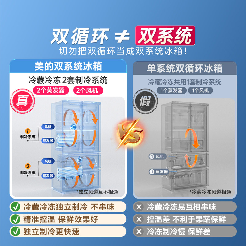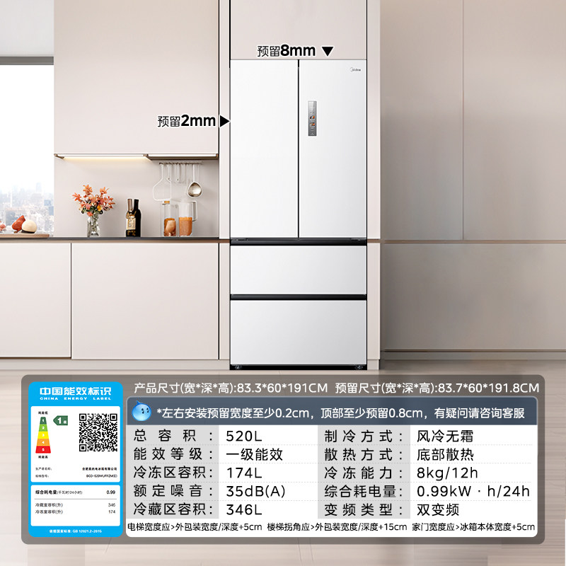 双系统|美的M60小机皇520超薄零嵌入式冰箱家用法式多门四门双开