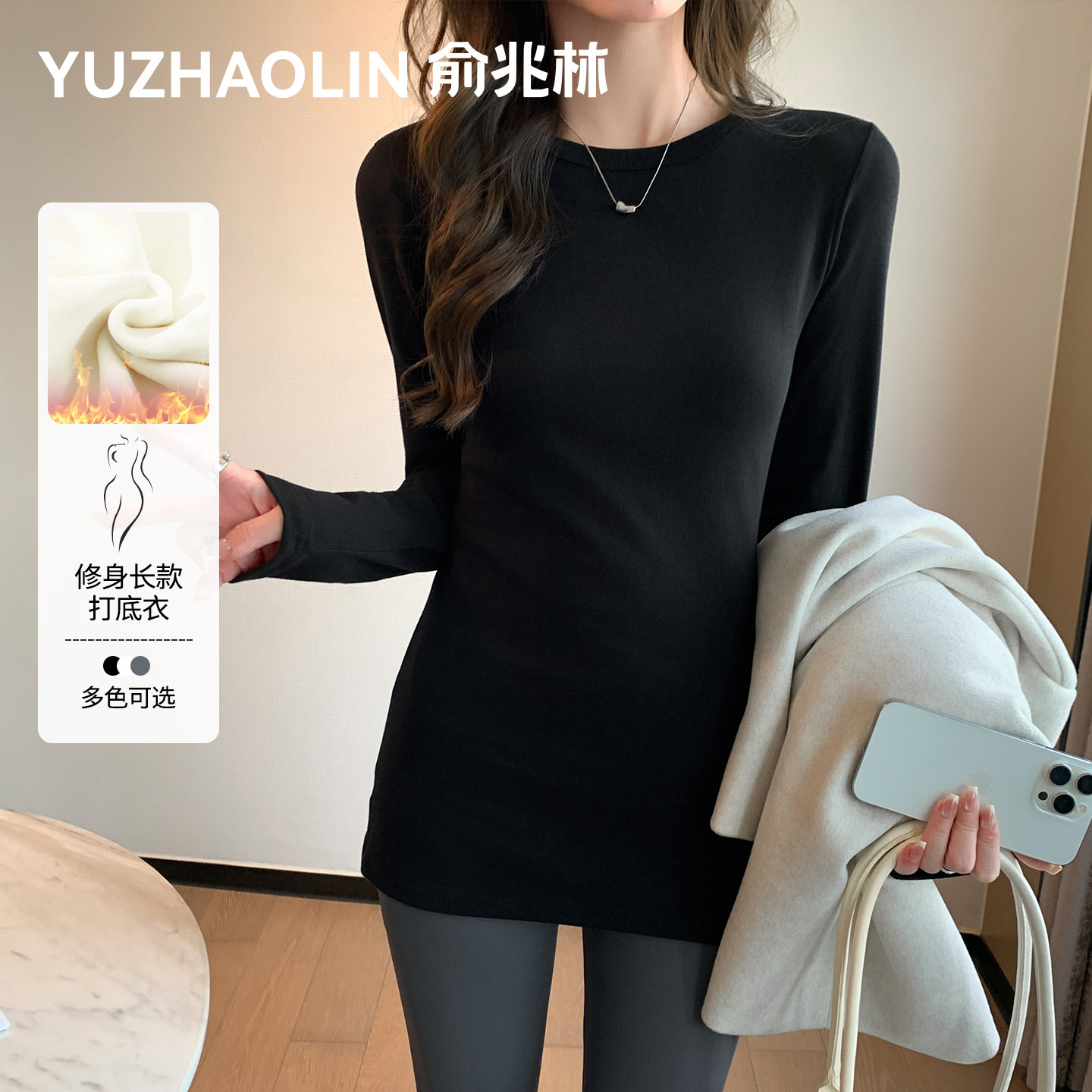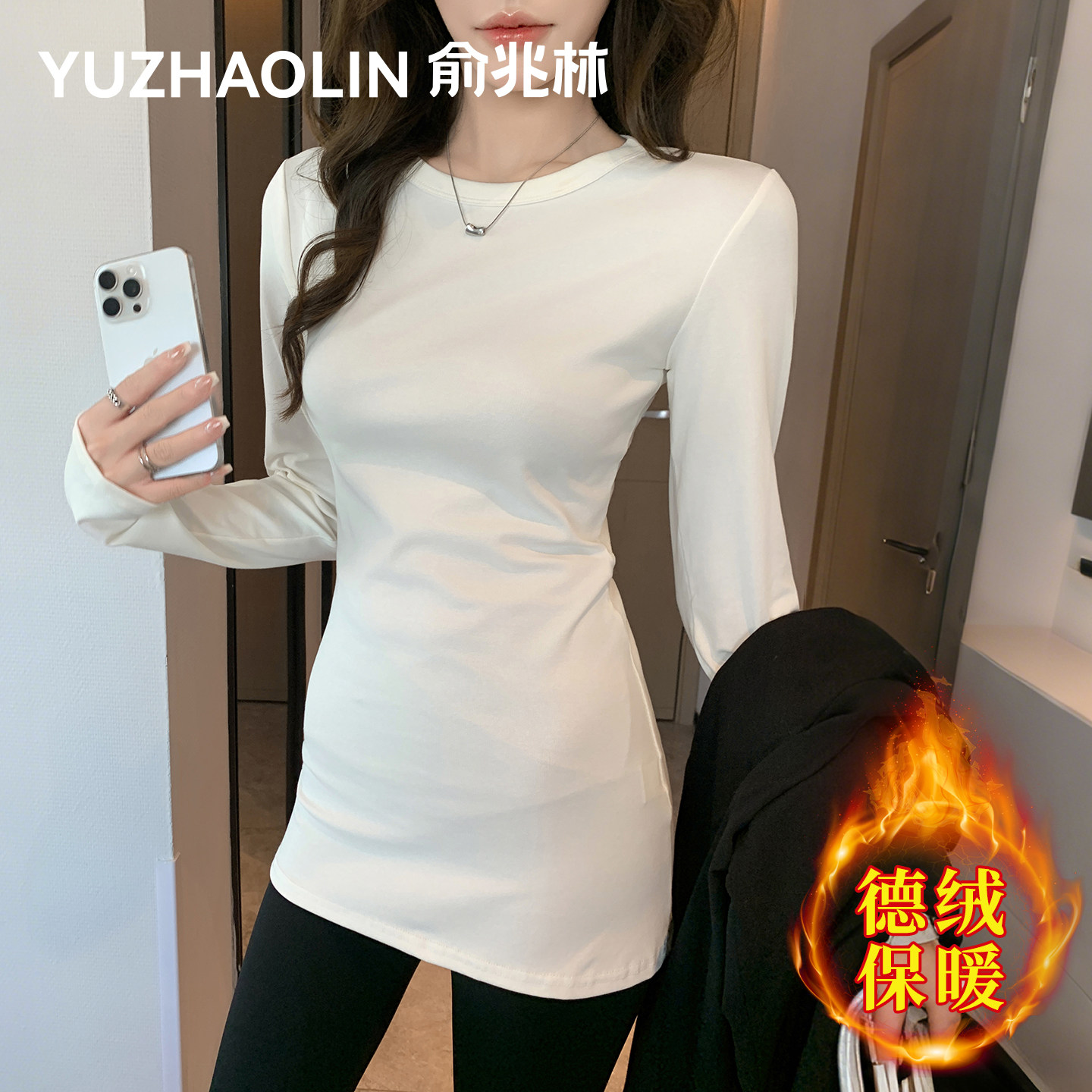 白色圆领打底衫女内搭2025新款秋冬季德绒修身保暖中长款长袖上衣