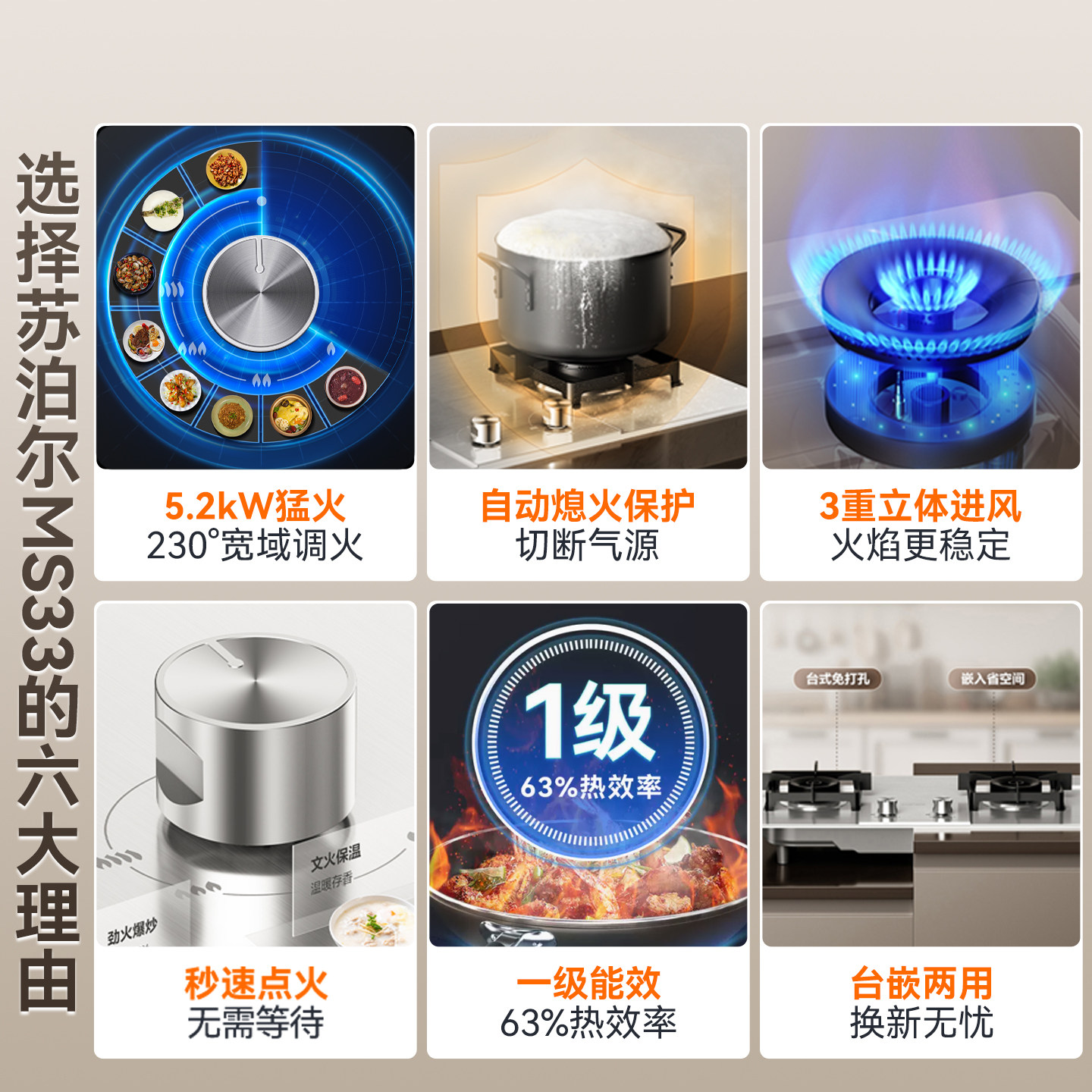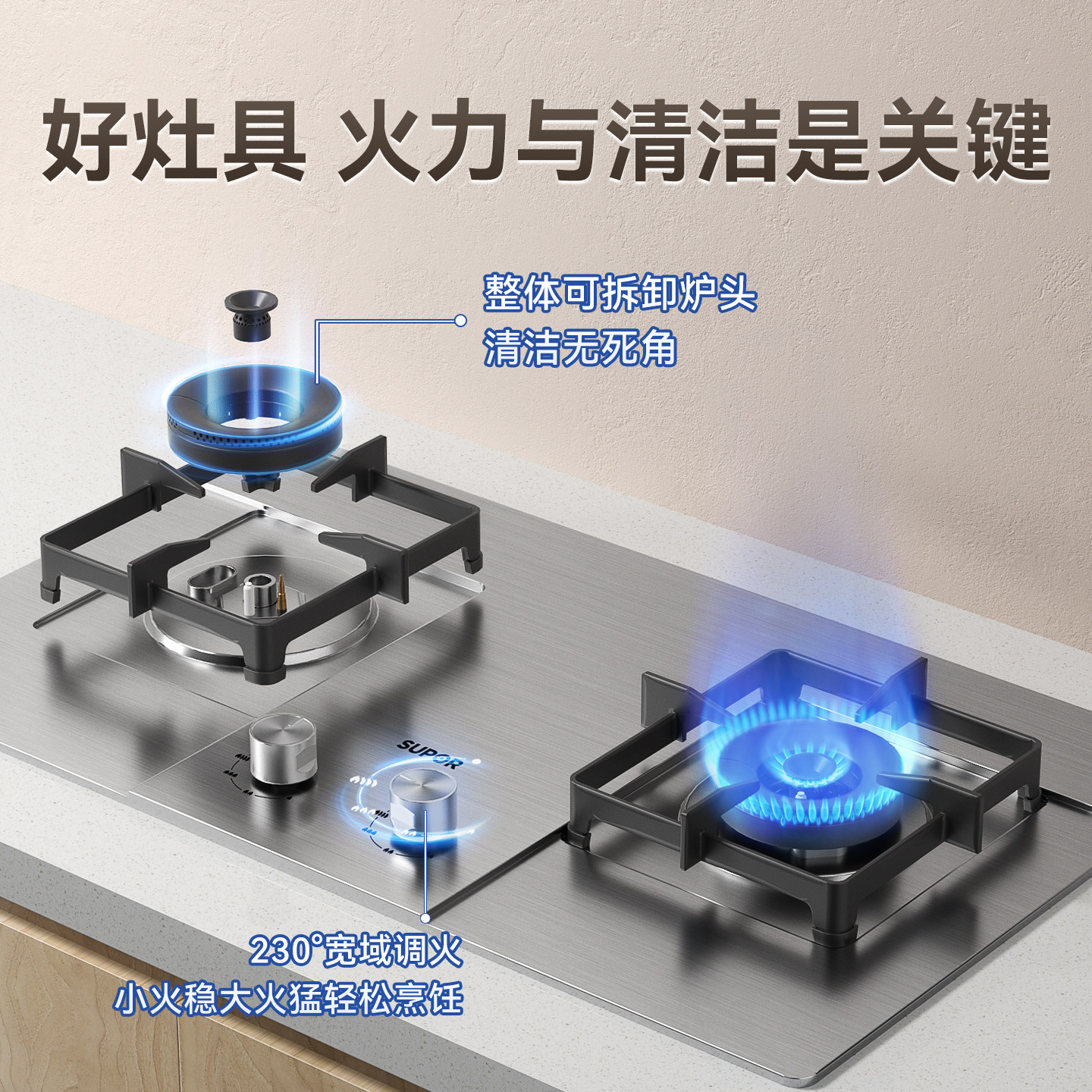 苏泊尔5.2kw不锈钢煤气灶双灶家用燃气灶天然气炉灶具液化气灶台