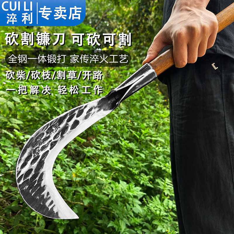 手工锻打砍柴刀农用割草镰刀户外开路砍割两用弯刀砍树专用开刃