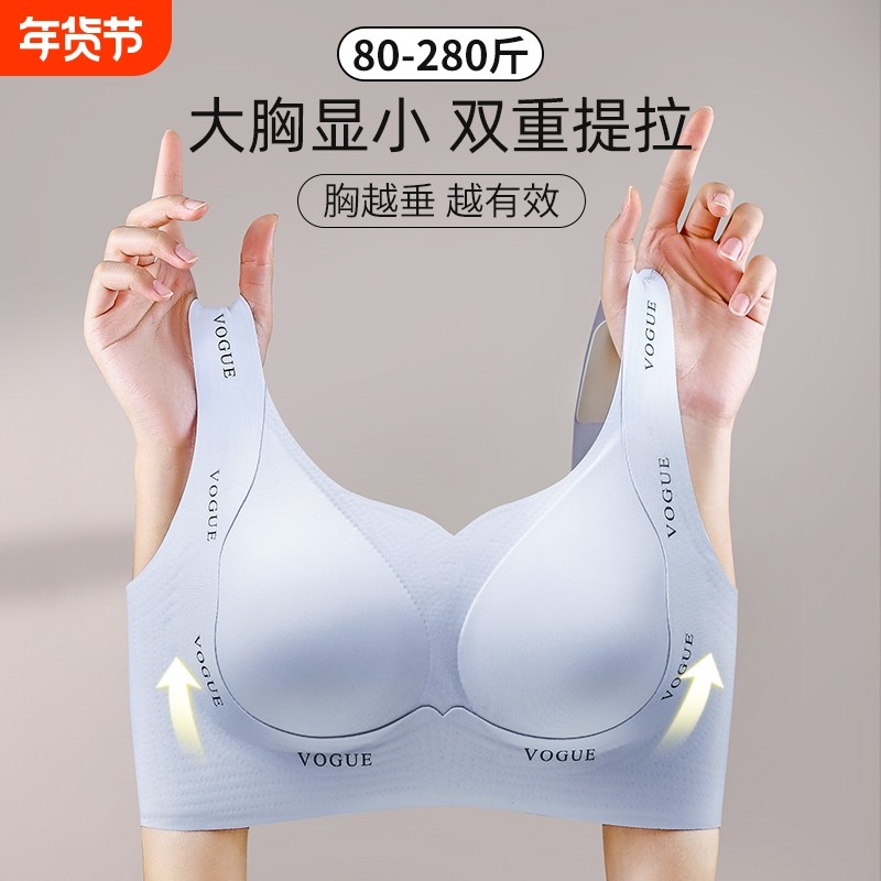 润微提拉女王内衣女大胸显小无痕大码调整防下垂收副乳粉底液文胸