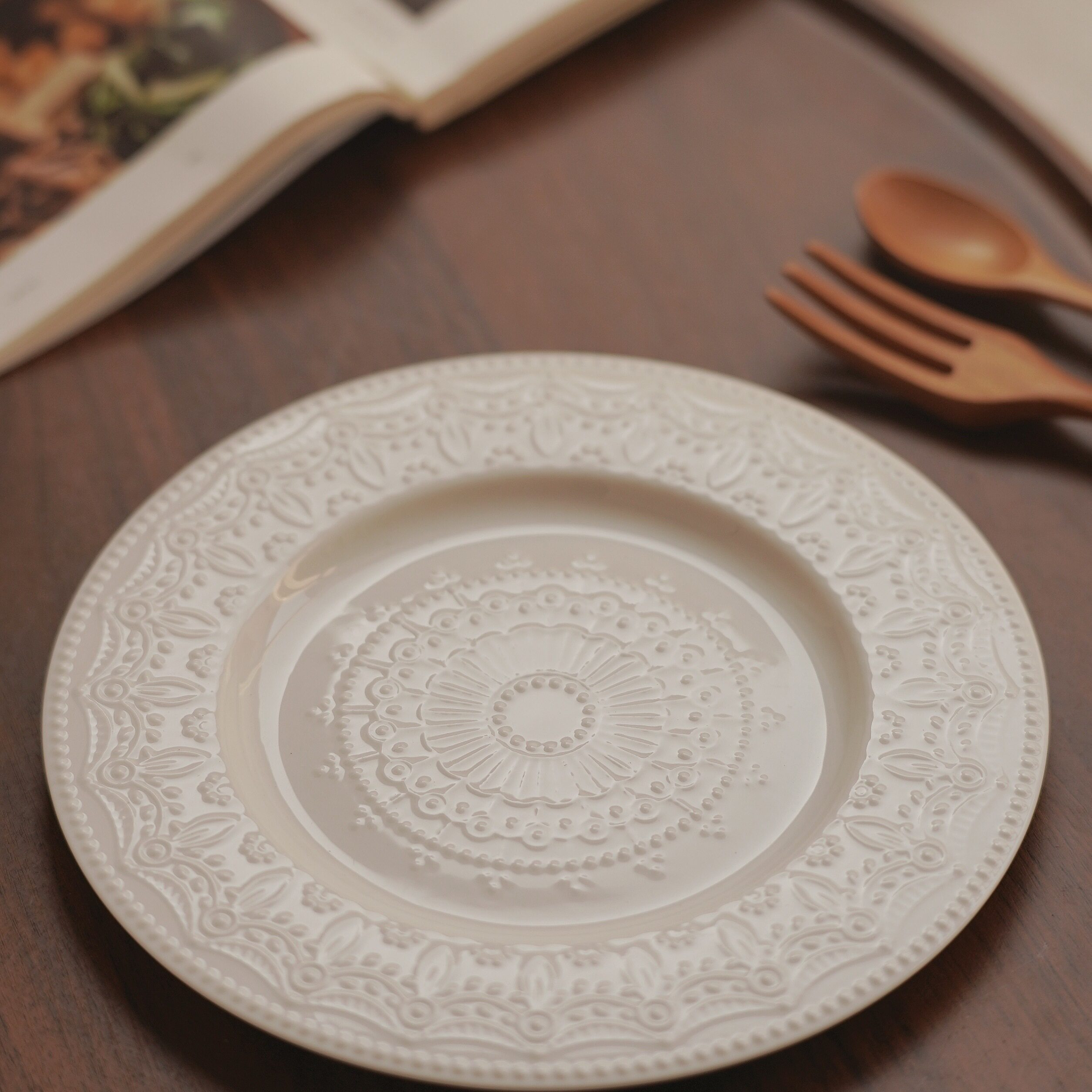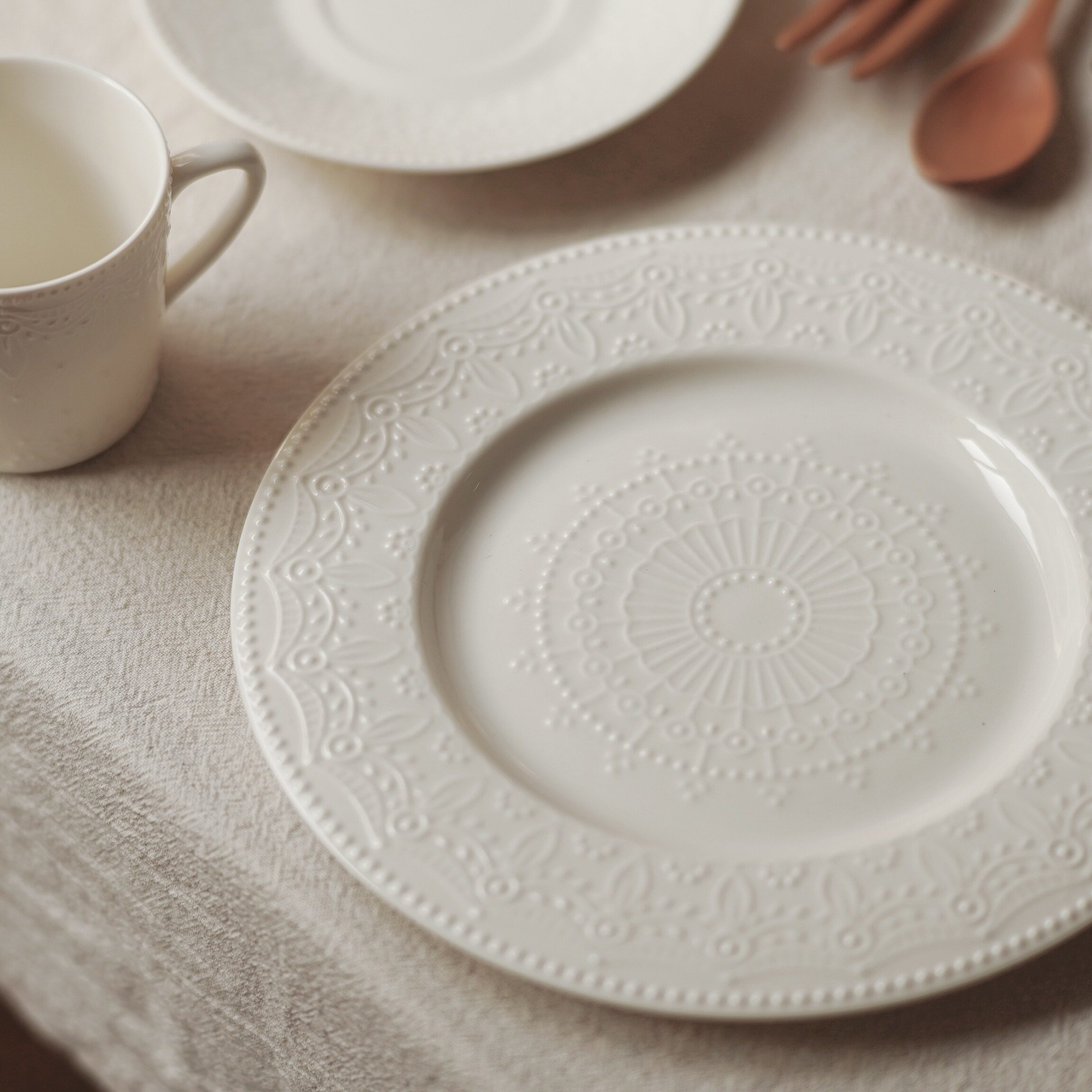 法式蕾丝浮雕新款碗碟套装家用盘子菜盘陶瓷饭碗汤碗鱼盘碗盘餐具