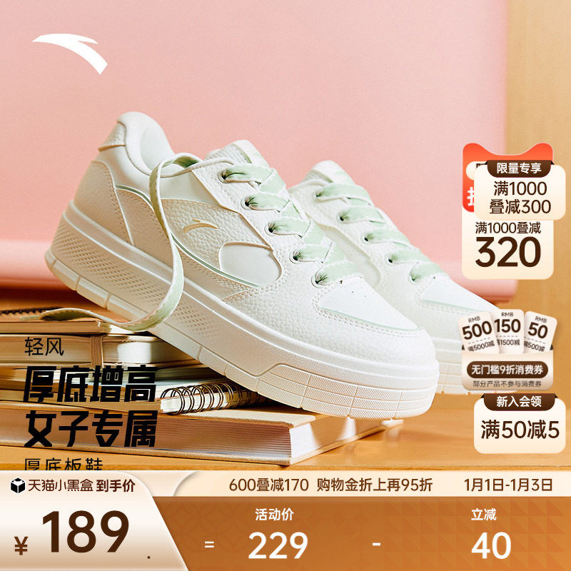 安踏轻风丨板鞋女子百搭复古小白鞋冬季厚底增高轻便学生休闲鞋