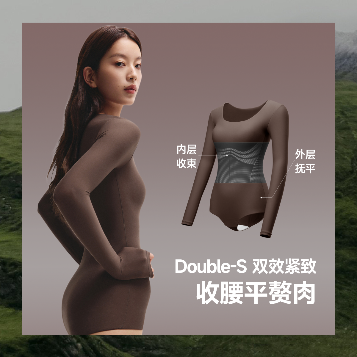 【张雨绮同款】曲线主义黑巧长袖连体塑身衣女25新款保暖显瘦美体