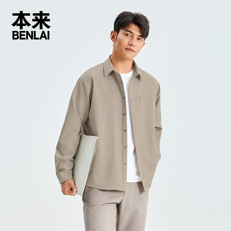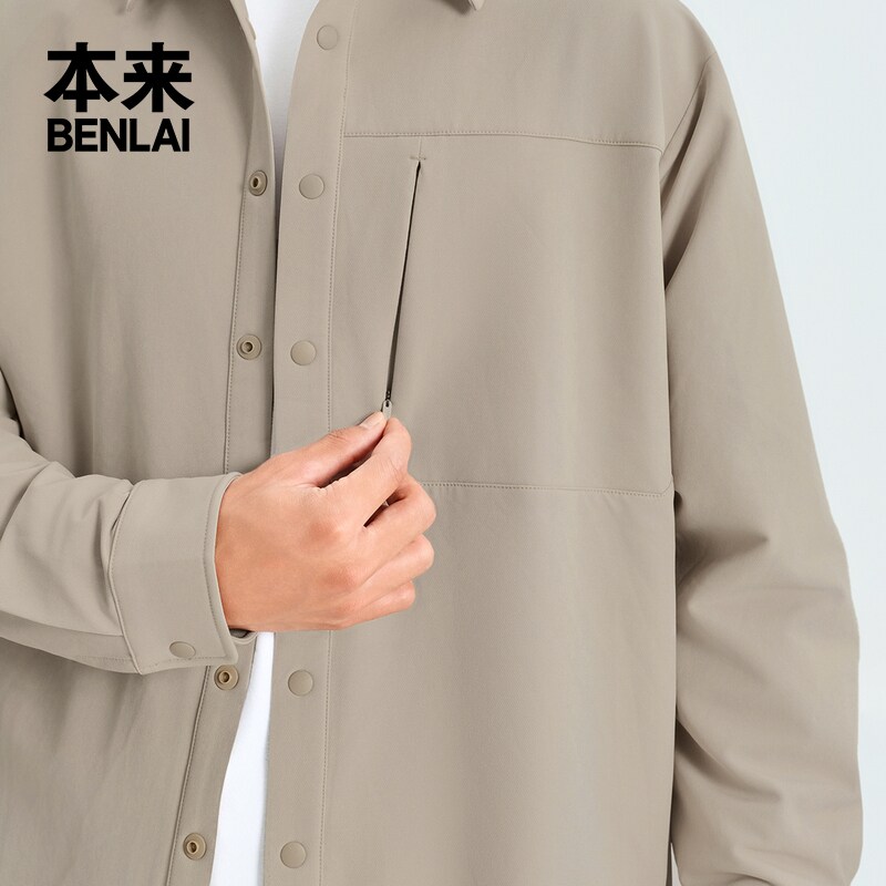 本来BENLAI男士抗皱绒底保暖衬衫宽松长袖衬衣25冬新款BRM250007