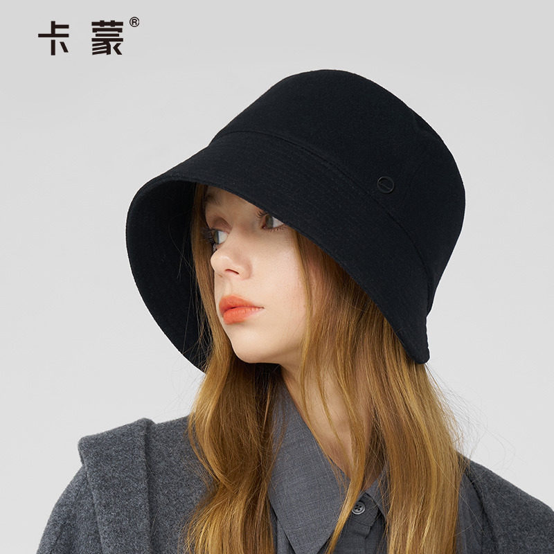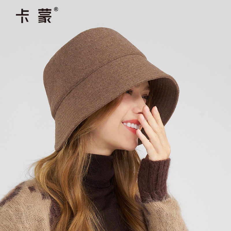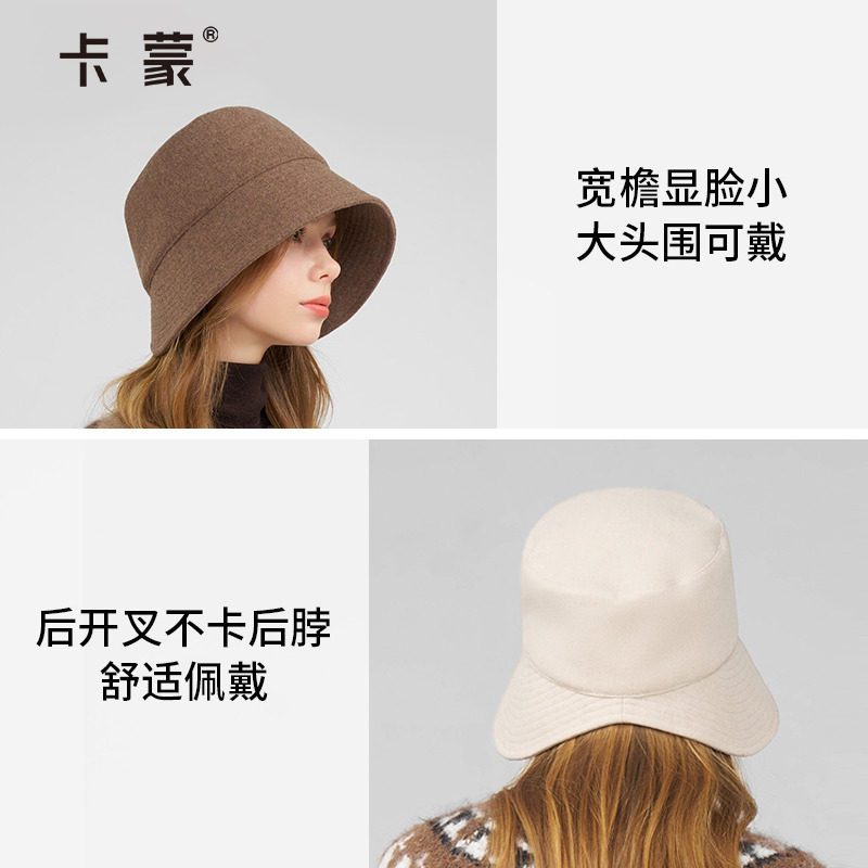 卡蒙高级感羊绒冬季帽子护耳毛呢渔夫帽女士羊毛保暖盆帽显脸小
