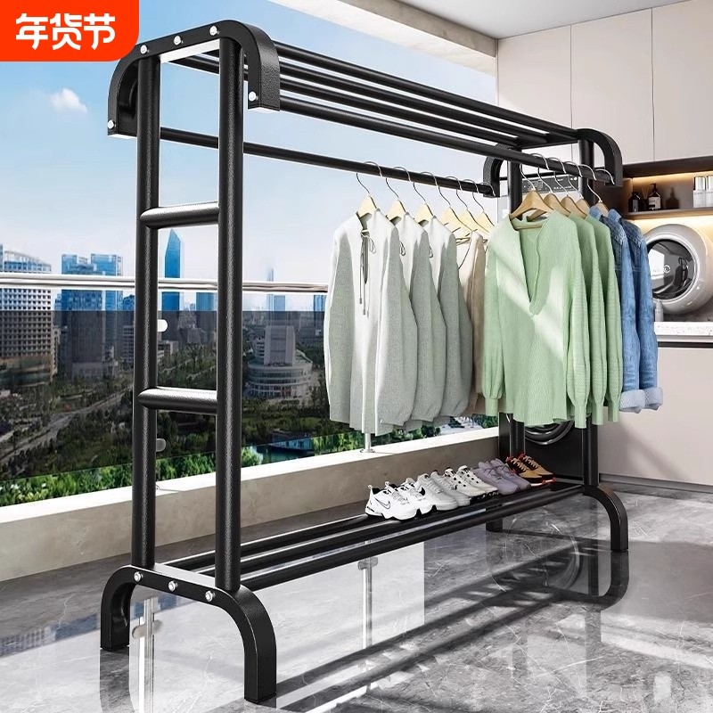 衣架卧室晾衣架落地挂衣架放衣服神器移动置物架衣帽架双层承重
