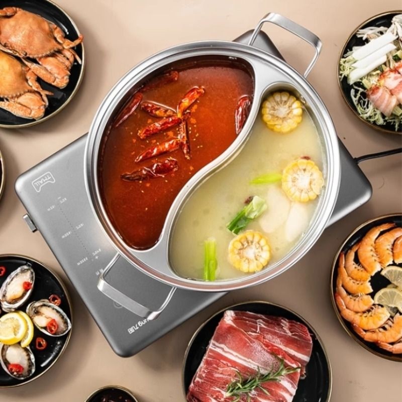 一体成型鸳鸯锅电磁炉通用火锅家用大容量涮锅具加厚不锈钢火锅盆
