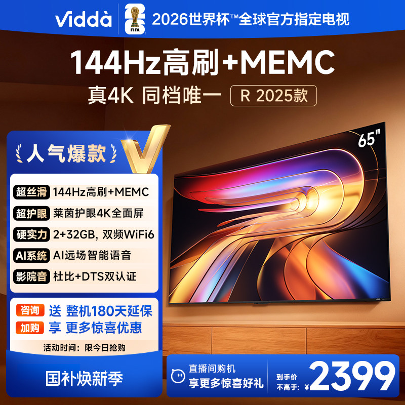 Vidda海信电视 R65 2025款65英寸144Hz高刷 电视机以旧换新补贴75