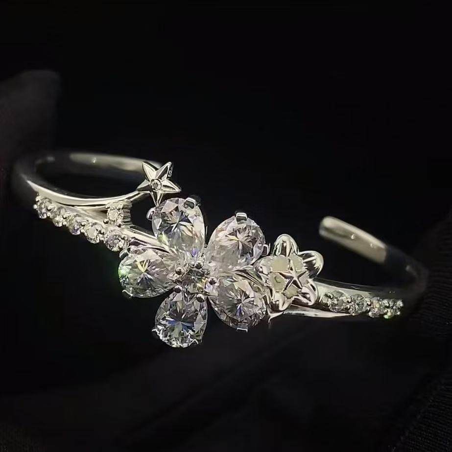 轻奢高级感满钻手镯女银色钛钢不掉色镯子手链手环新款情侣手饰品