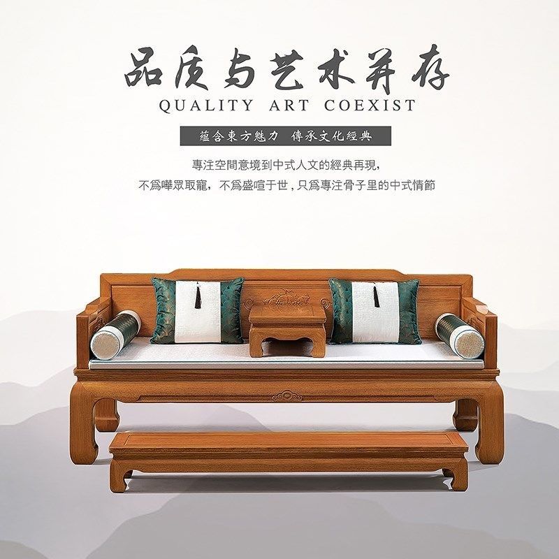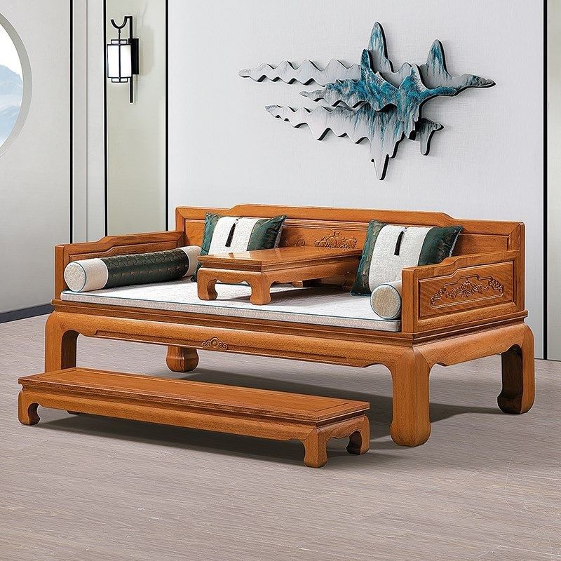 HF2X罗汉床实木中式沙发床菠萝格花梨木单人床榻坑几脚踏脚几厂家