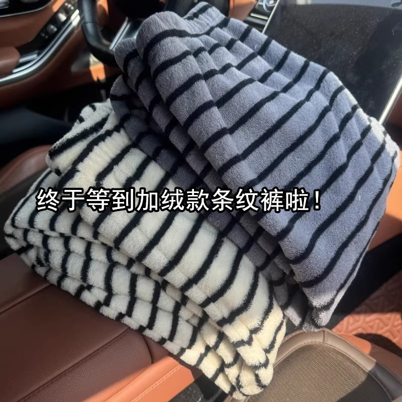 特价加绒暖暖条纹遛弯裤女冬季保暖珊瑚绒休闲宽松睡裤居家懒人裤