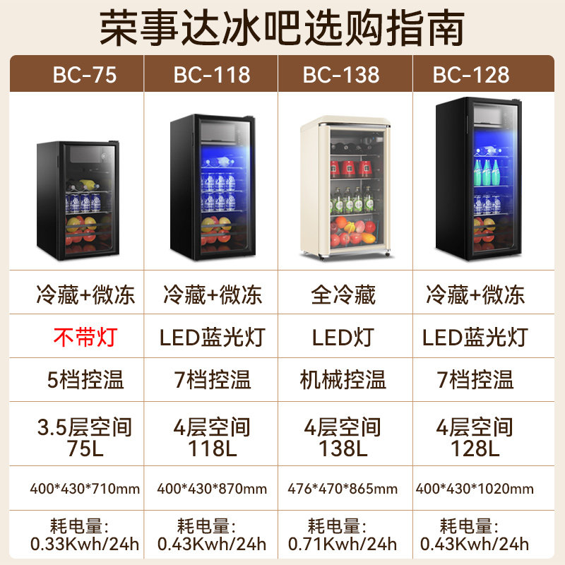 荣事达复古冰吧家用小型饮料冰箱客厅办公室冷藏茶叶红酒柜恒温
