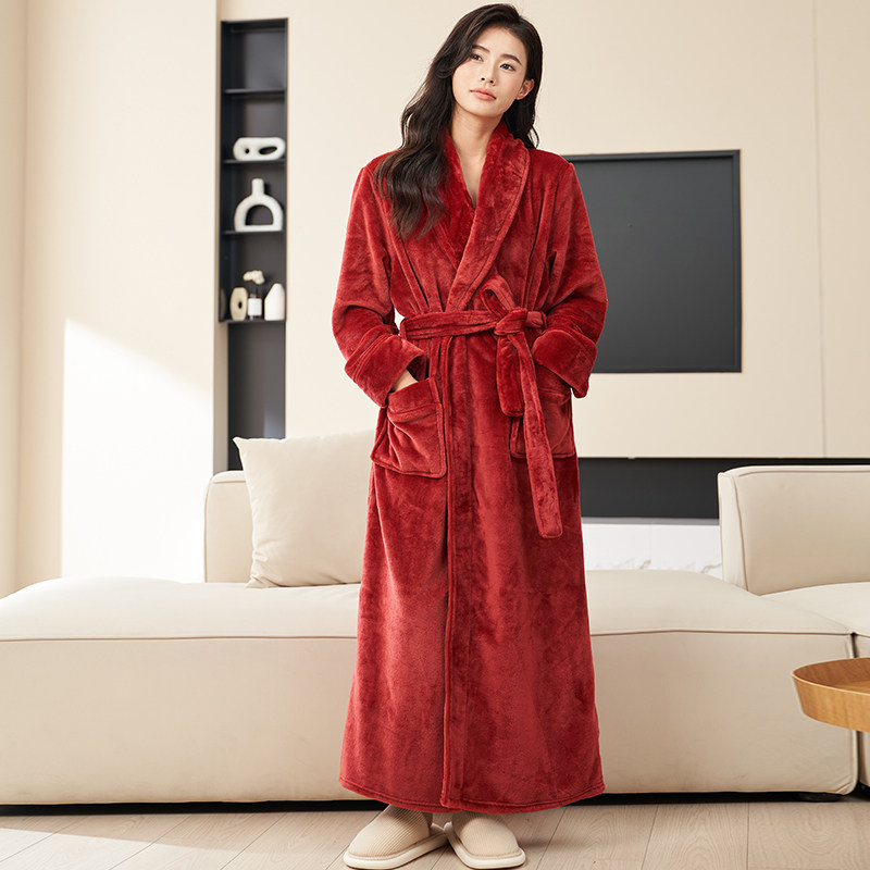 睡袍女秋冬长款珊瑚绒加厚加绒男士浴袍冬季法兰绒睡衣超长到脚踝