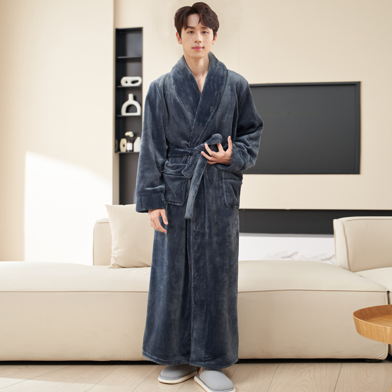 加厚加绒睡袍男冬季新款2025珊瑚绒保暖睡衣男士长款浴袍秋冬浴衣