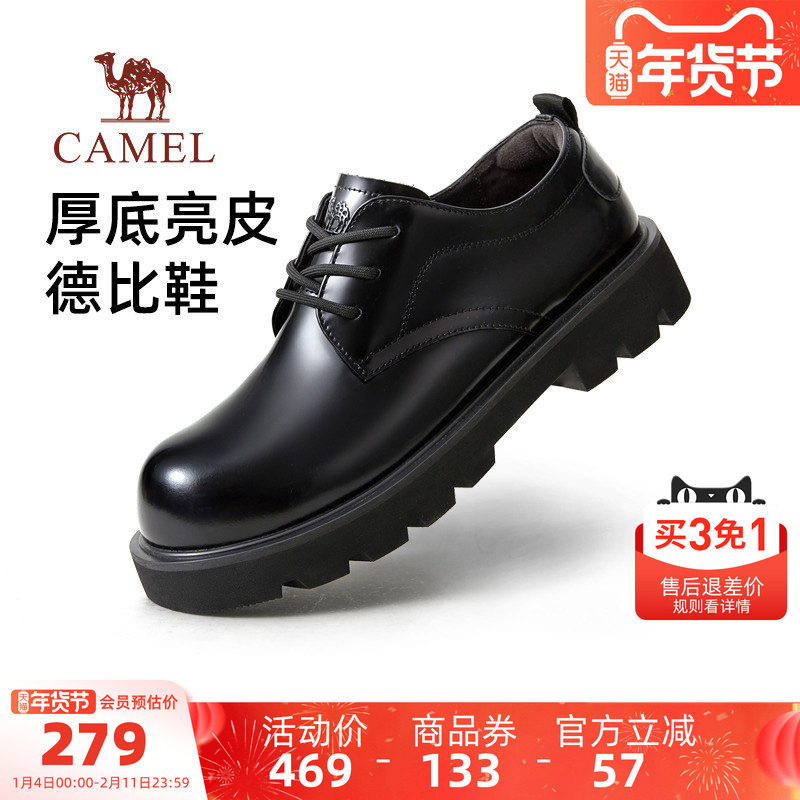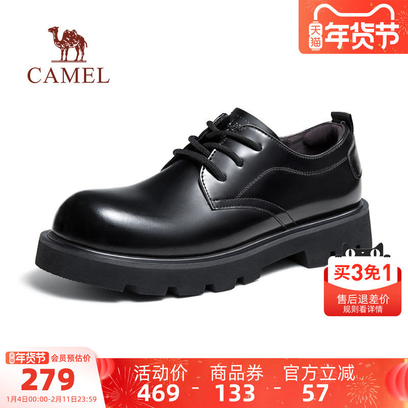 骆驼男鞋2025秋季新款圆头防滑商务德比鞋黑色厚底休闲正装皮鞋男