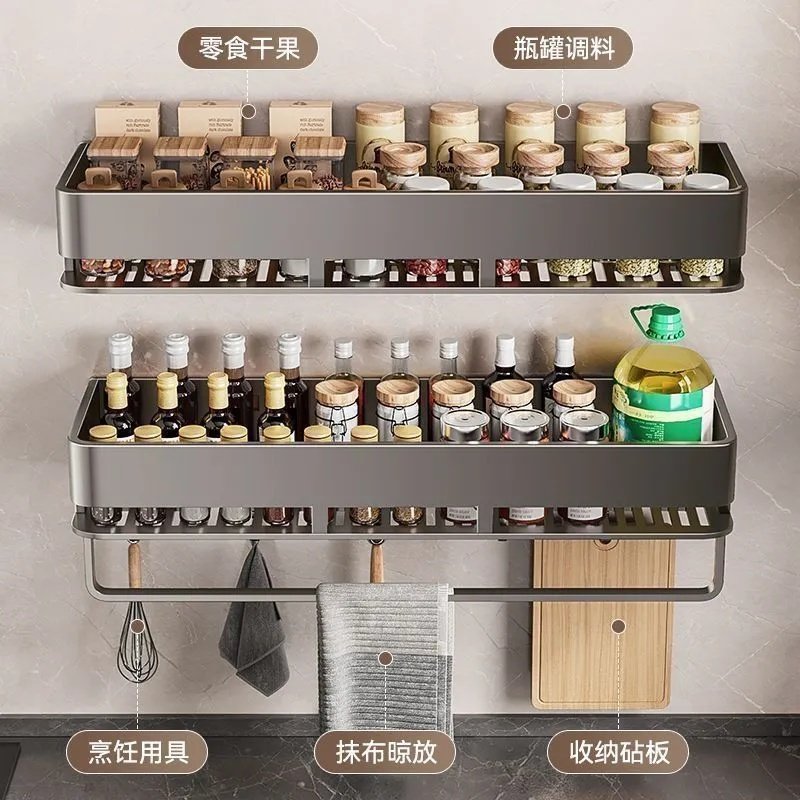 厨房置物架免打孔壁挂式调料架家用墙上油盐酱醋架可拆洗收纳架子