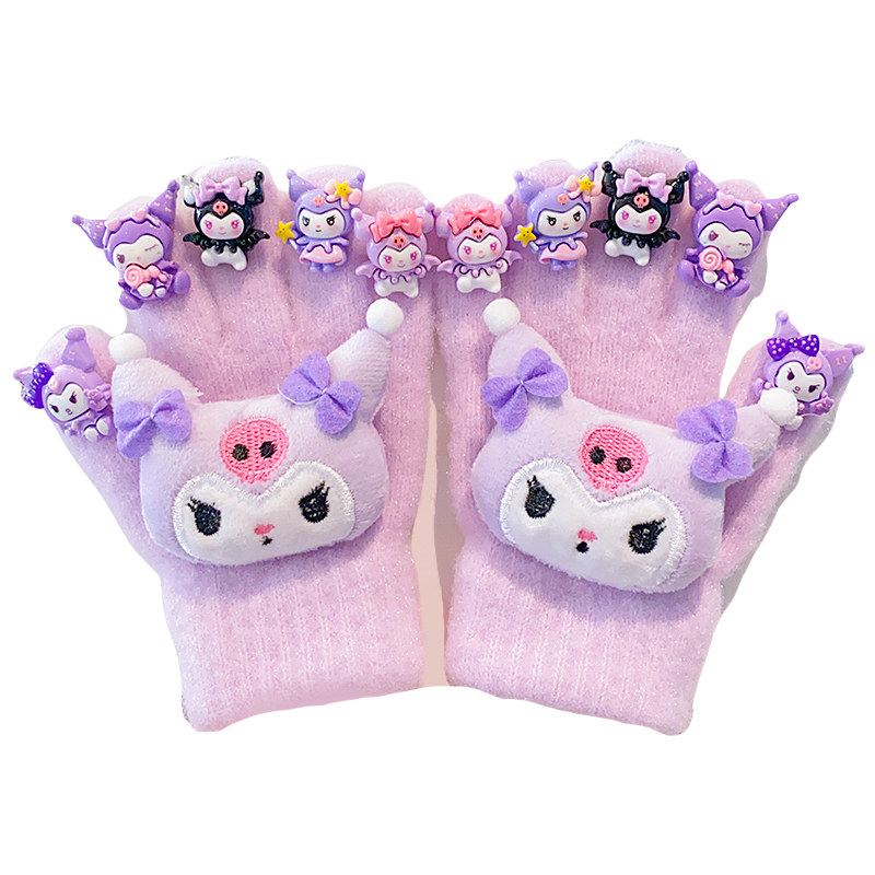 儿童2025库洛米手套冬季保暖防冻男女童美甲DIY宝宝加厚五指手套