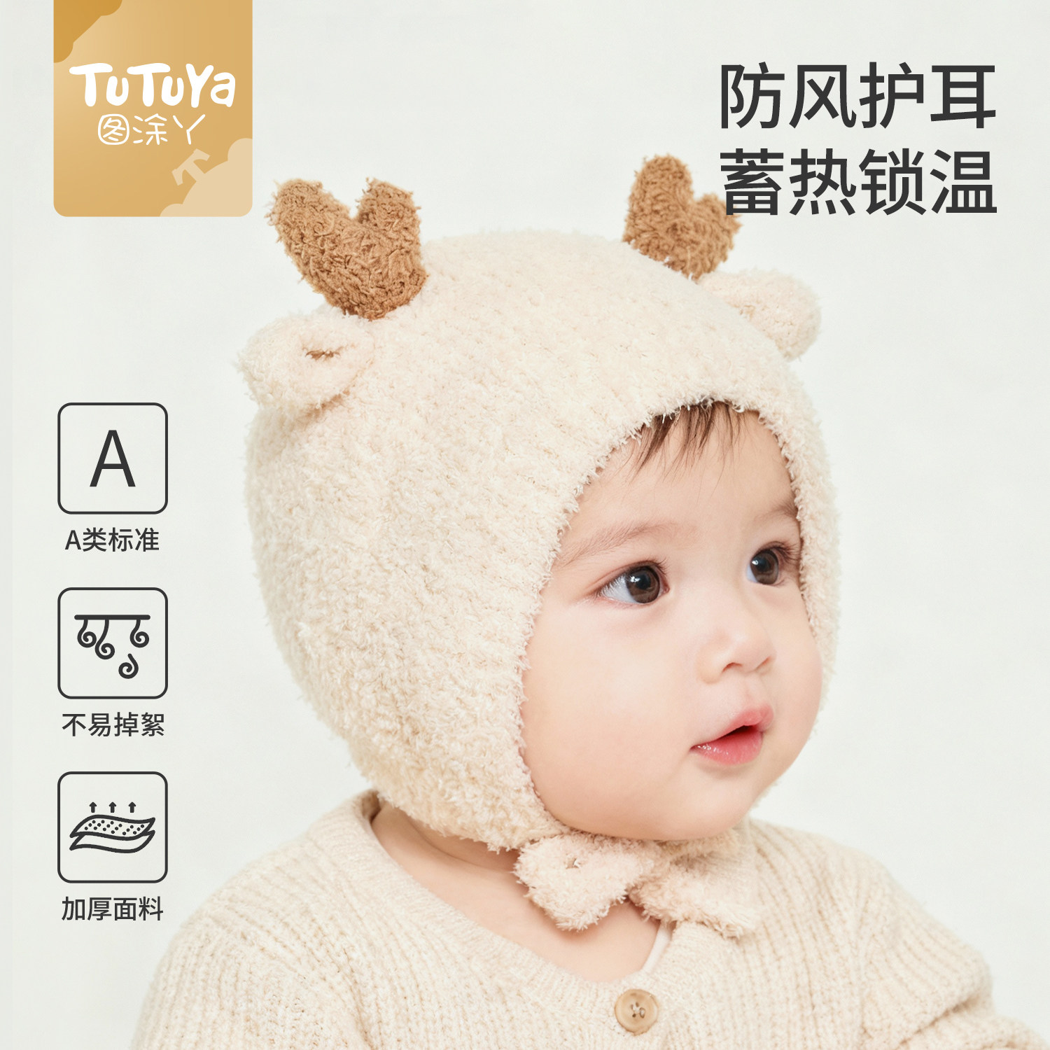 半边绒宝宝帽子秋冬季婴儿护耳帽女婴幼儿毛绒帽儿童外出保暖冬帽