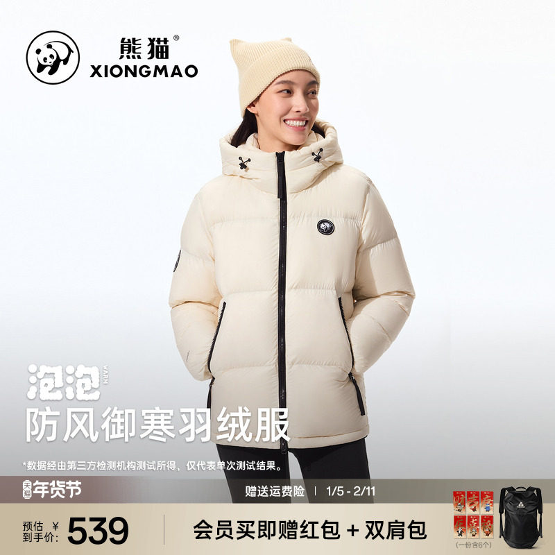熊猫户外羽绒服2025新款秋冬男女同款高领防风保暖连帽外套面包服