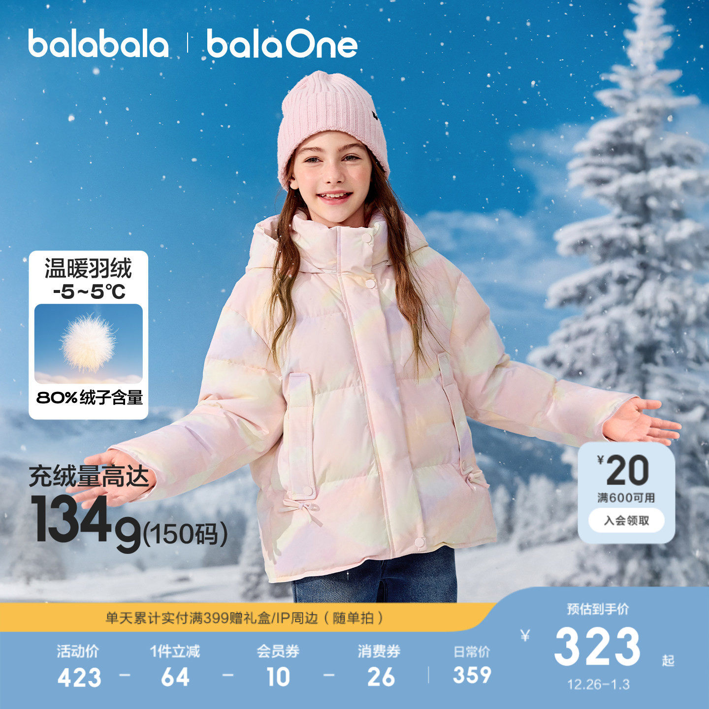 巴拉巴拉童装儿童羽绒服女童户外防风保暖冬装外套上衣2025新款潮