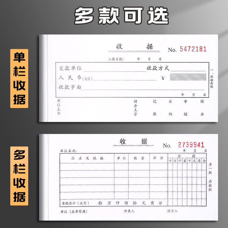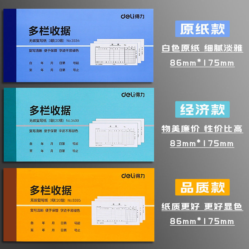 得力10本装收据本二联三联单栏多栏无碳复写账簿单据簿加厚现金收据条收款本餐饮小票财务会计用品付款票据单