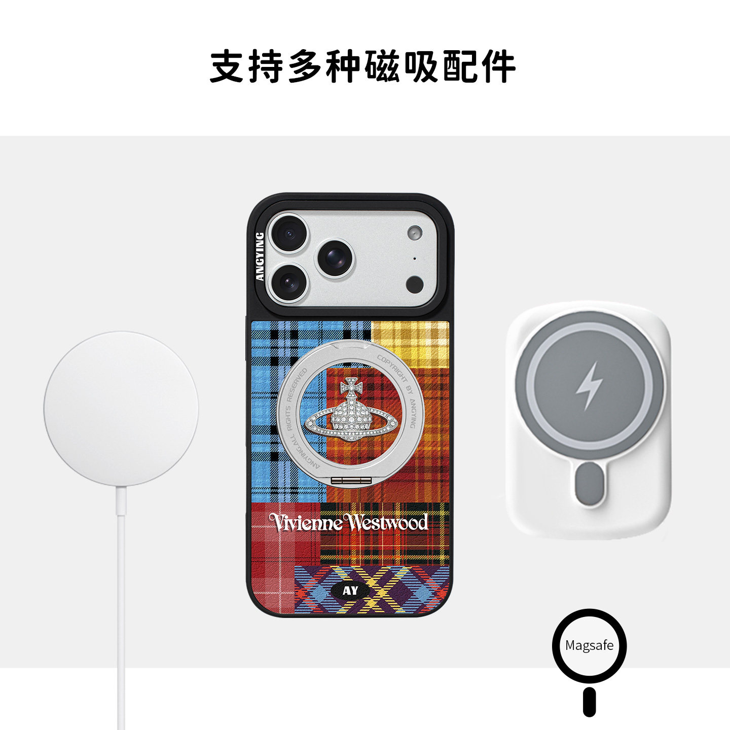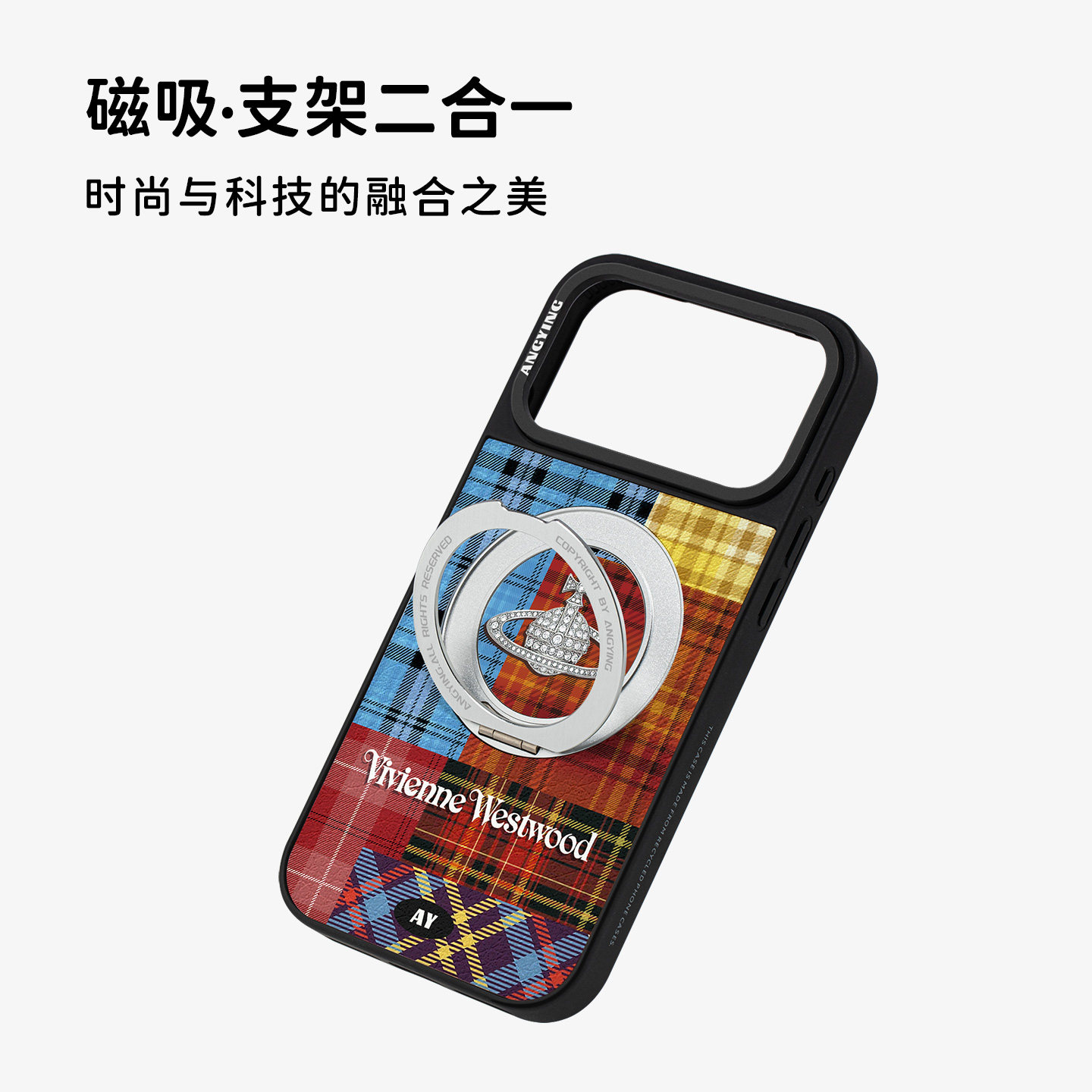 ANGYING × 西太后拼贴适用苹果17promax手机壳新款iphone16pro磁吸带支架ip15支点Yo6潮牌网红秋冬套高级感