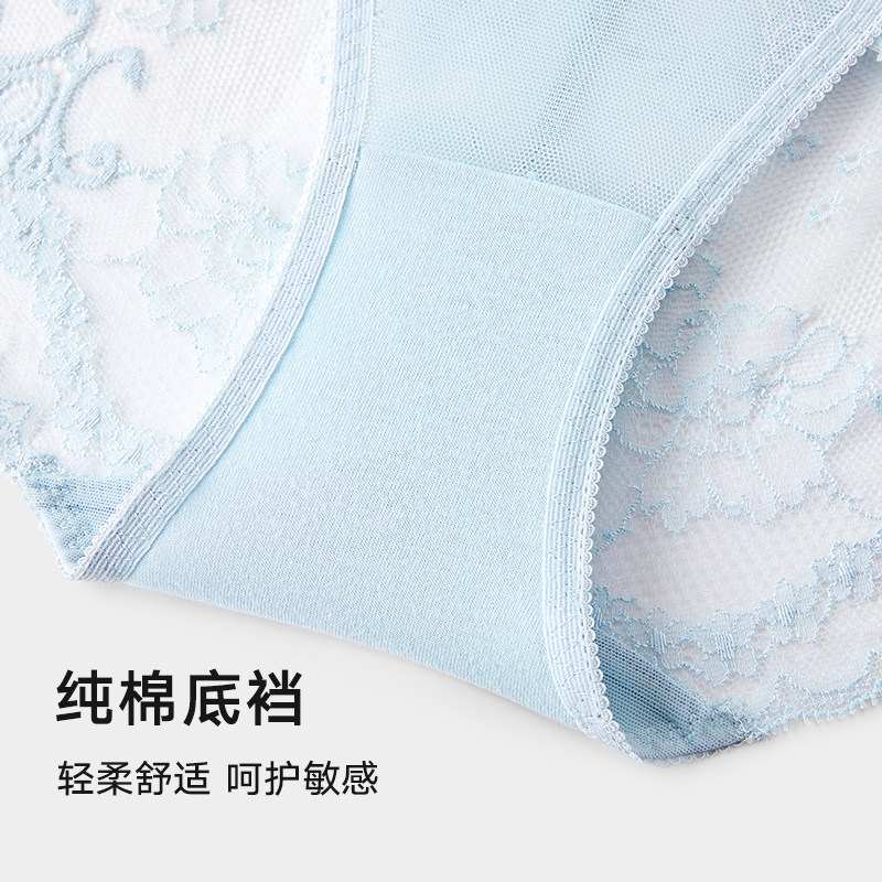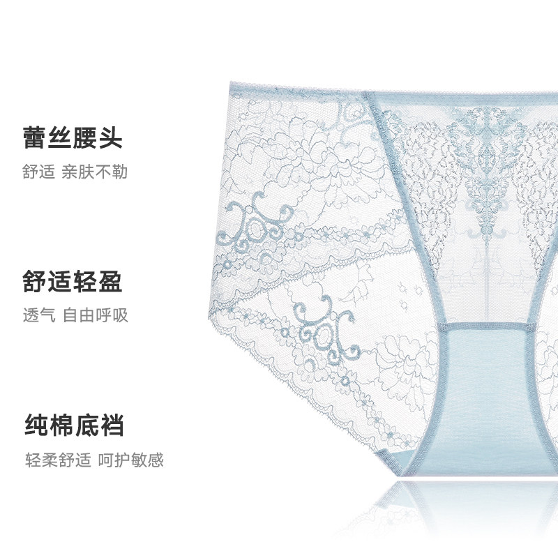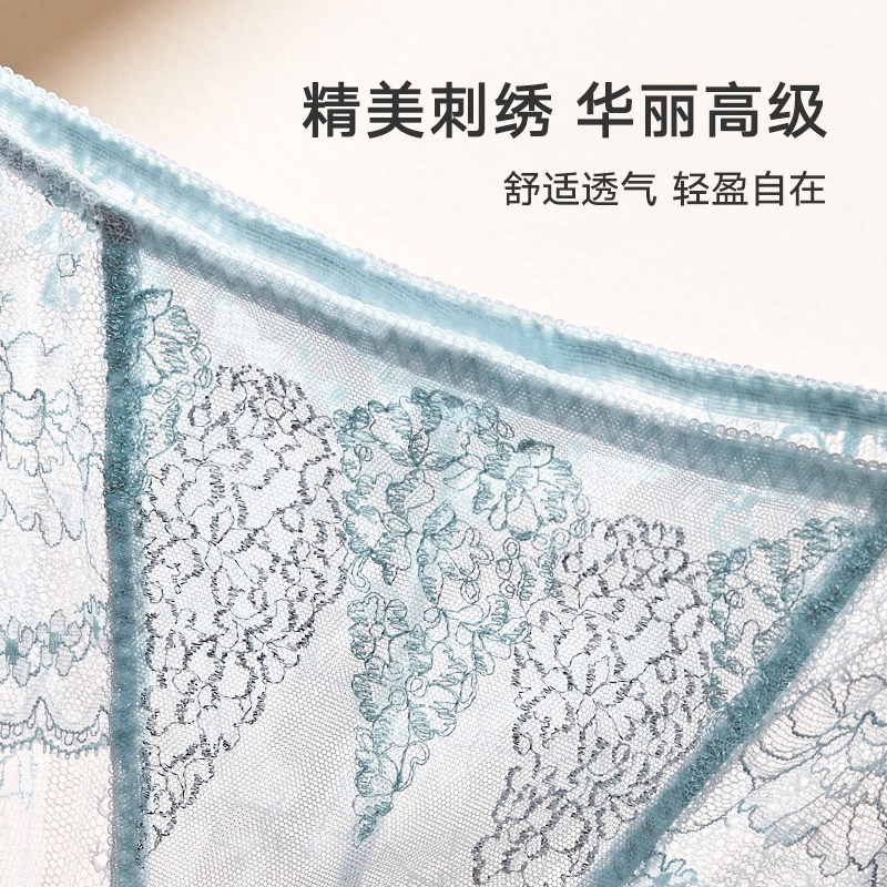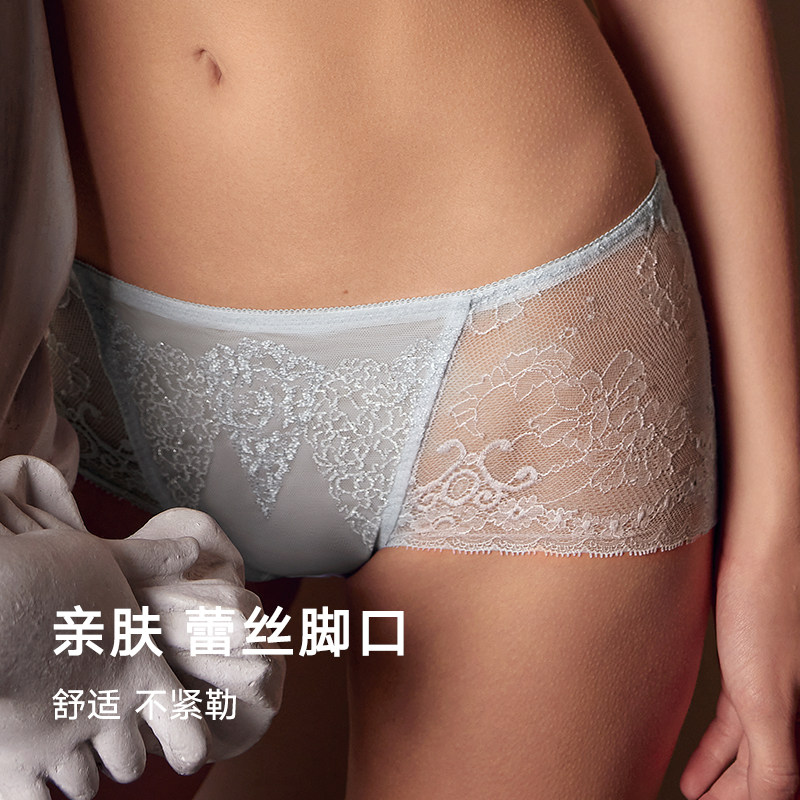 曼妮芬性感蕾丝刺绣中低腰无痕平角裤女士内裤透气舒适女士三角裤