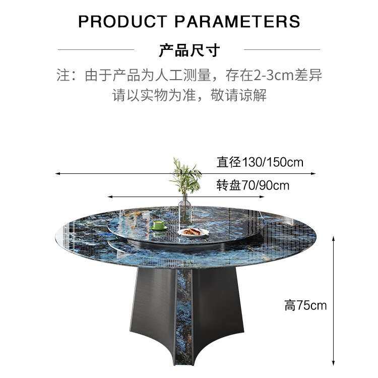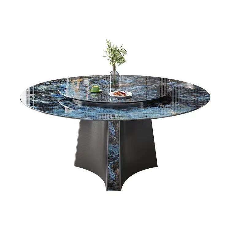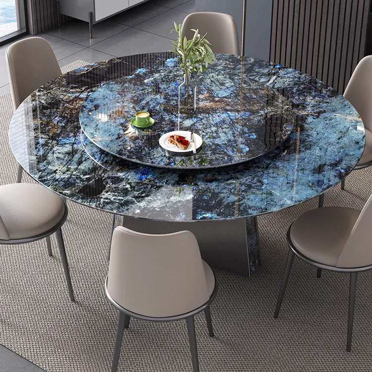 高端意式大理石圆餐桌轻奢微晶石带转盘饭桌家用超晶石餐桌椅组合