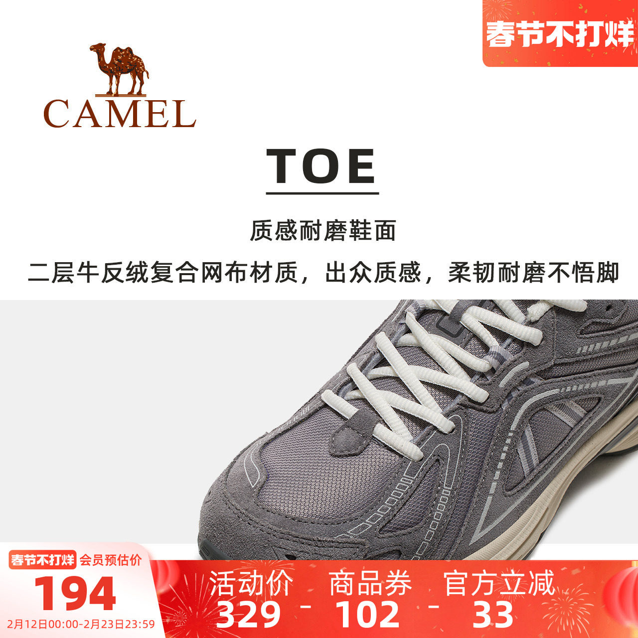 骆驼凯旋男鞋登山鞋2025秋冬新款透气网面徒步鞋户外运动休闲鞋女