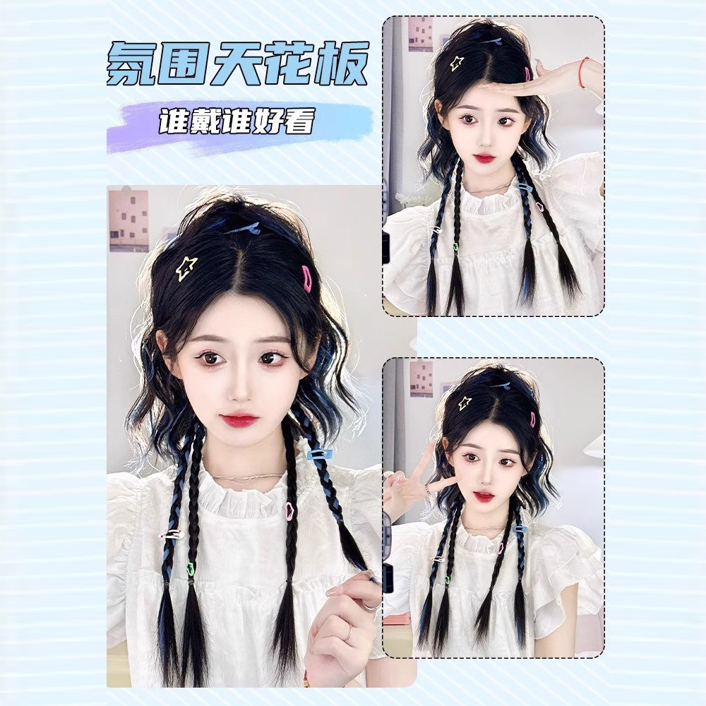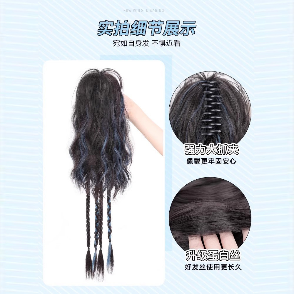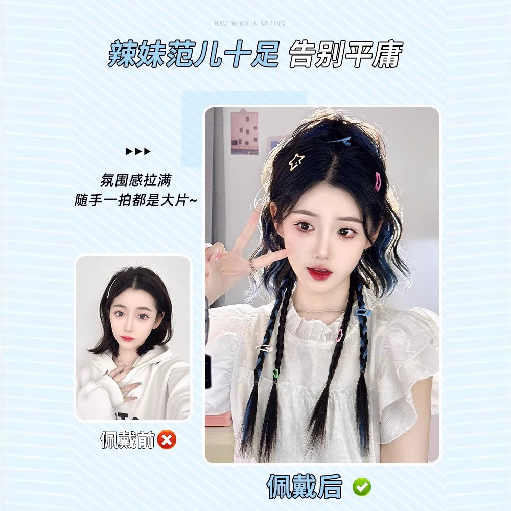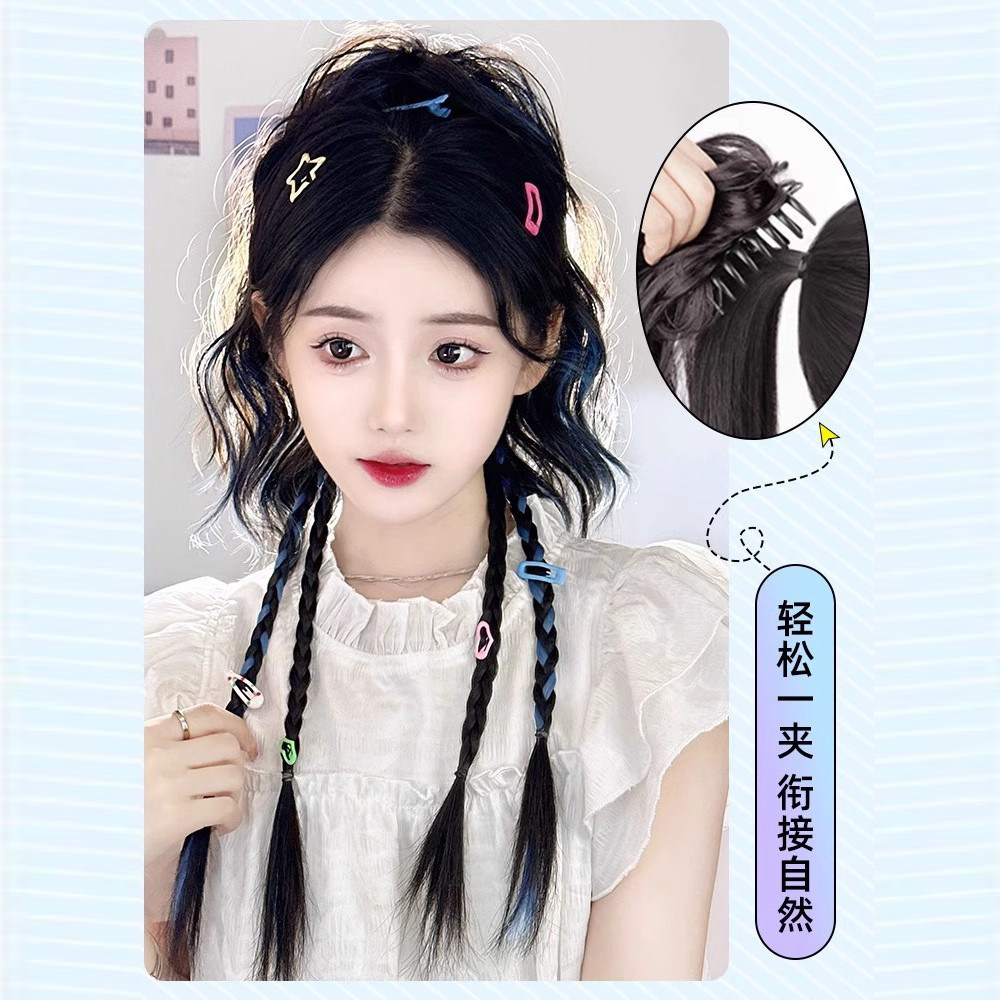 假发辫子女抓夹高马尾彩色挑染拳击辫仿真半扎辣妹麻花辫甜酷造型