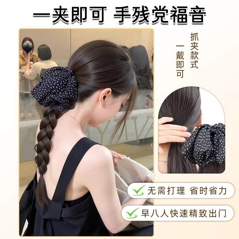 波点蝴蝶结低马尾假发辫子麻花辫仿真发长辫子发饰抓夹假发辫马尾