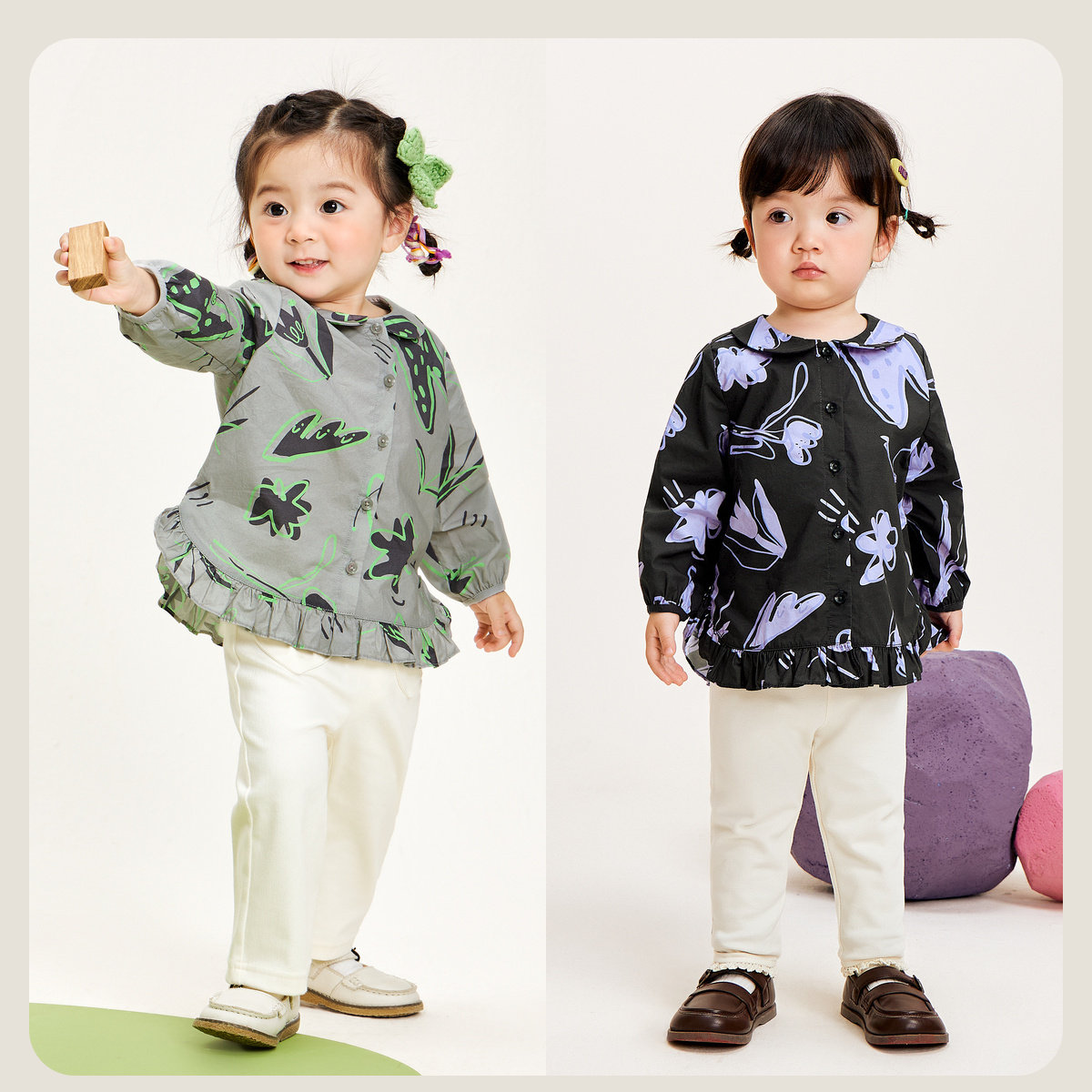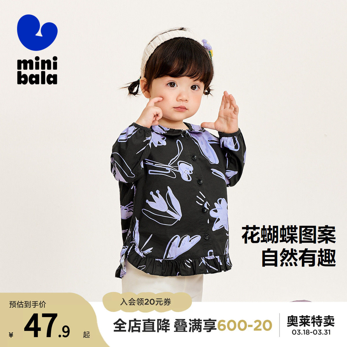 迷你巴拉巴拉女童长袖衬衫春季宝宝纯棉舒适透气甜美儿童衬衣