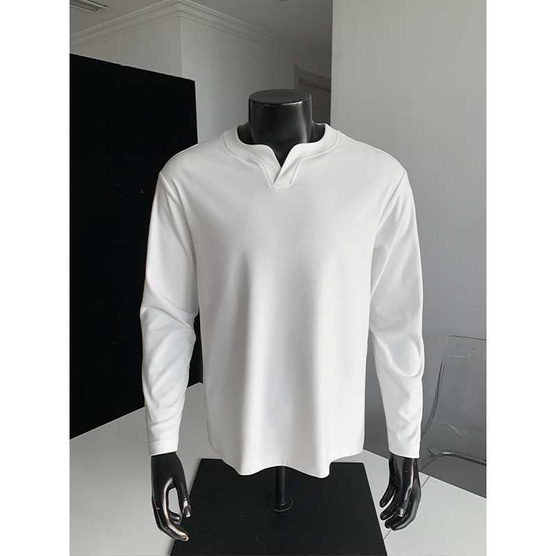 小众简约纯色重磅保暖打底衫上衣男潮牌简约德绒V领宽松长袖体恤