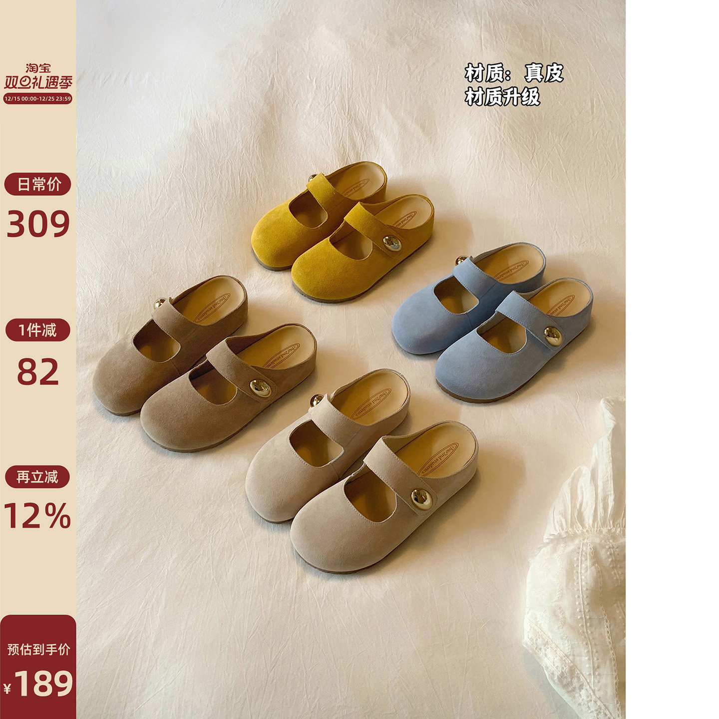 真皮包头拖秋季2025年新款勃肯鞋圆头拖鞋平底外穿休闲半拖懒人鞋
