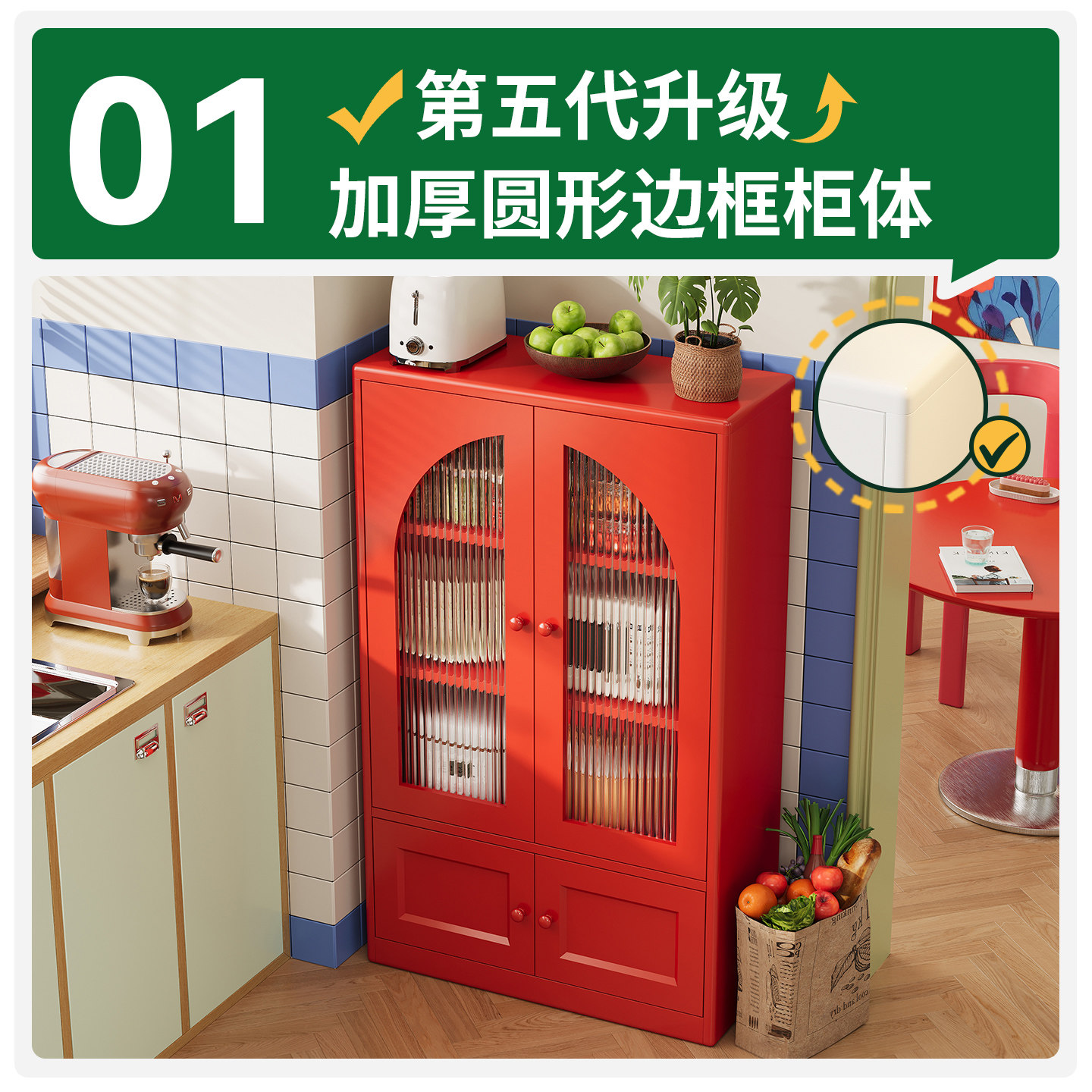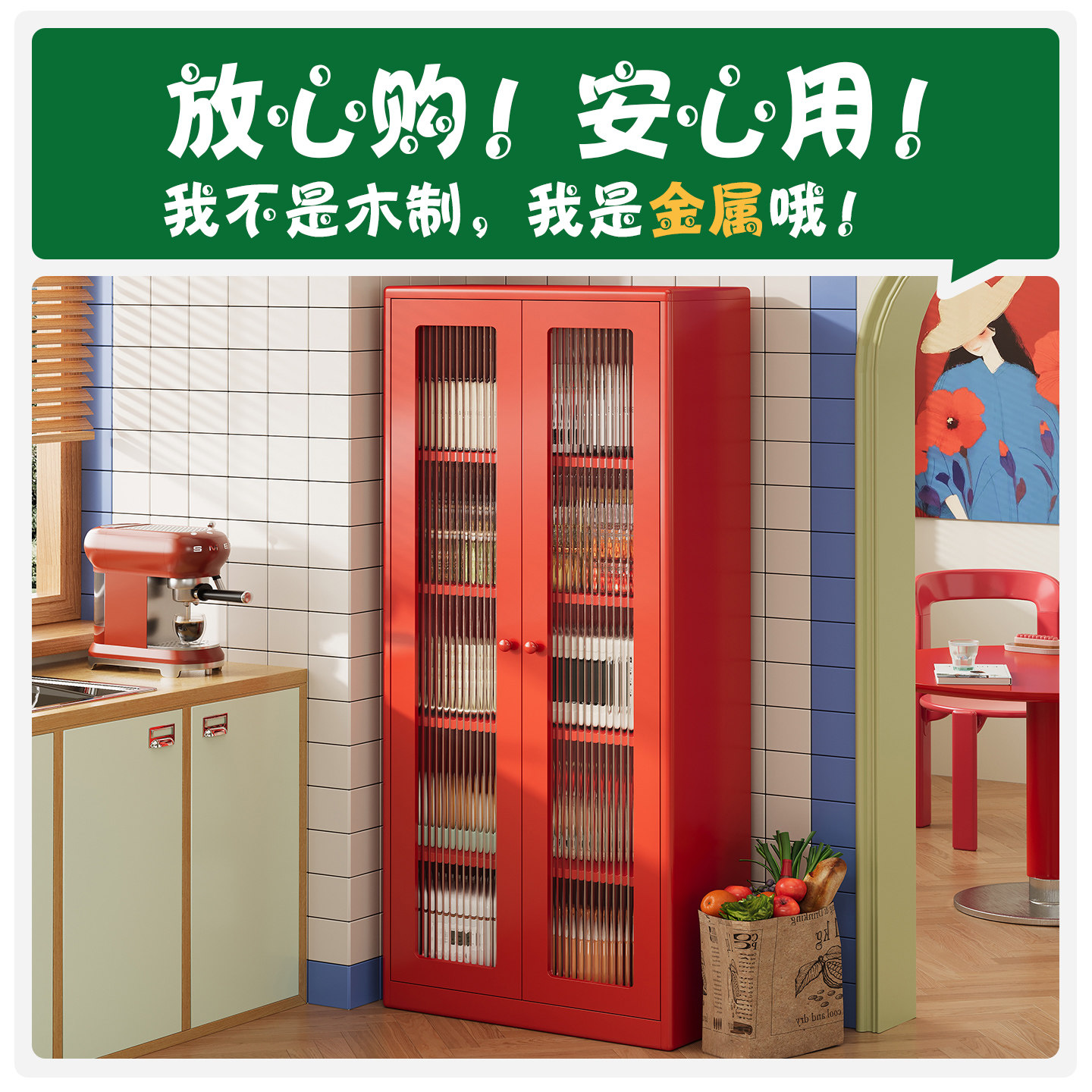复古风金属橱柜家用厨房置物柜靠墙一体客厅餐边柜墙边铁皮储物柜