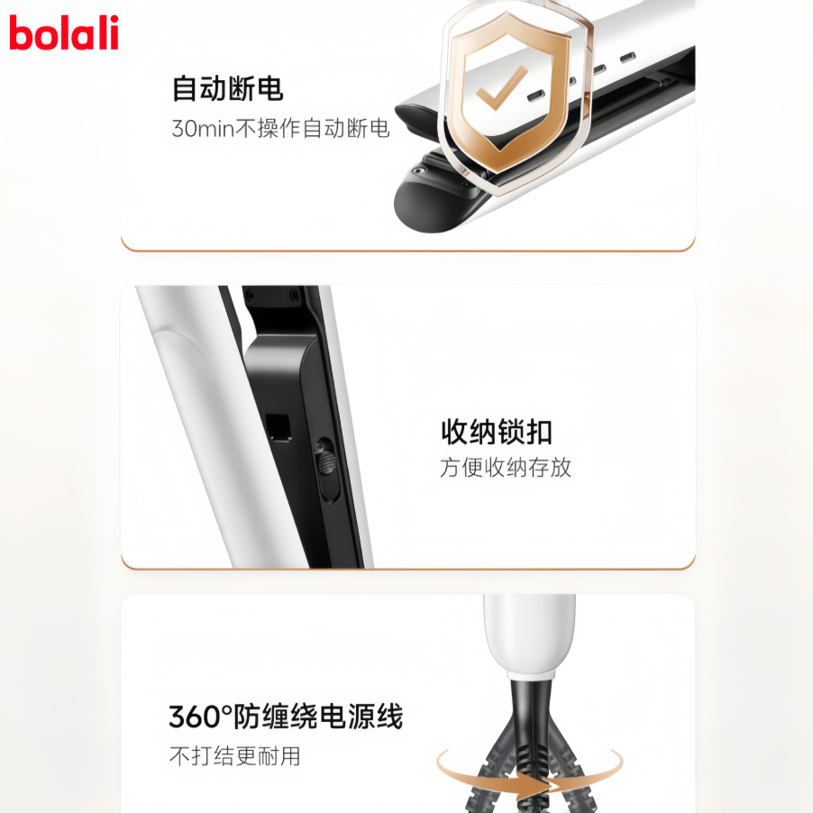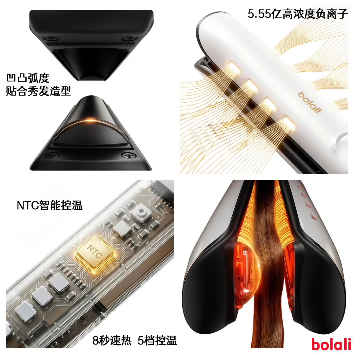博拉利卷发棒男女兼用弧形面板电发棒直发夹板直卷两用烫发神器