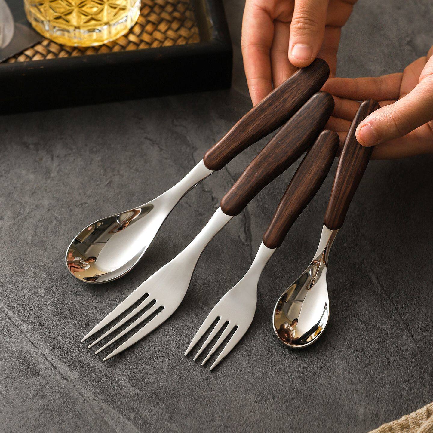 304不锈钢勺子叉子套装家用西餐餐勺高颜值儿童吃饭调羹汤勺