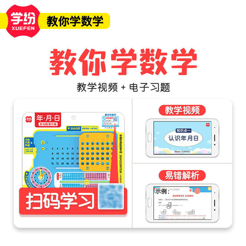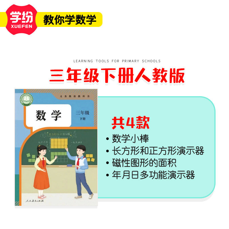 学纷2026年新版三年级下册人教版教材同步数学学具套装视频讲解年月日数学小棒磁性图形长方形与正方形演示器