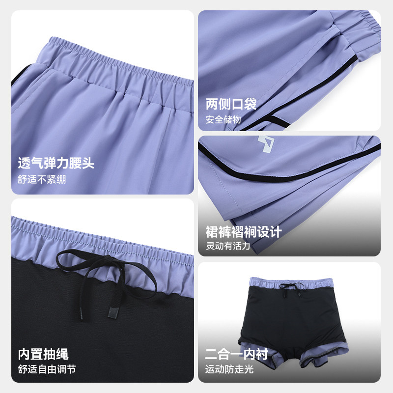 拓路者户外速干运动短裤女夏季防晒跑步健身百褶训练裤打底裤女裤