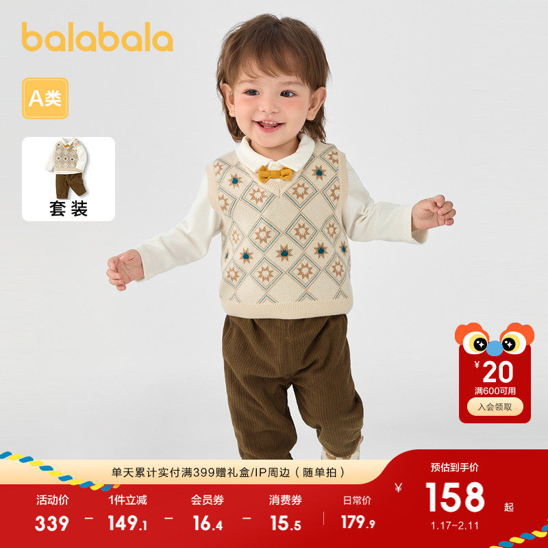 巴拉巴拉宝宝套装秋冬男童三件套加绒休闲套装洋气精致气质时尚潮