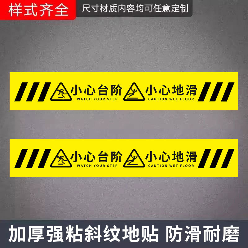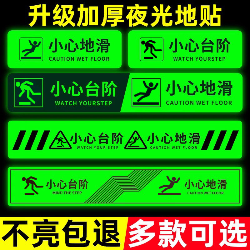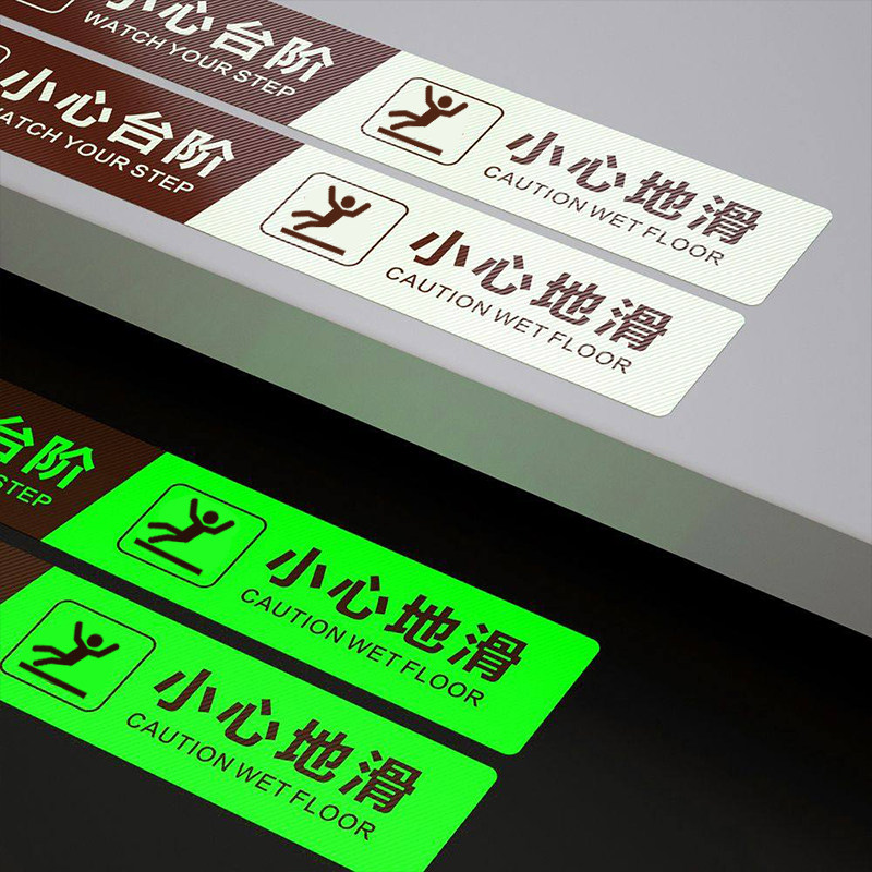 耐磨防水自发光小心台阶提示贴注意台阶警示牌夜光小心台阶地贴小心地滑安全提示牌上下楼梯地标指示贴标识牌
