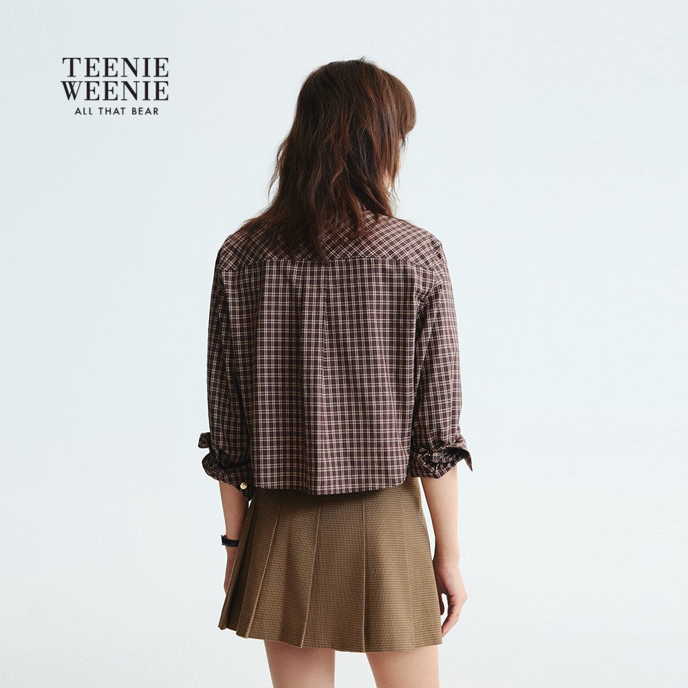TeenieWeenie小熊女装衬衫2025秋季新款女装气质通勤短款格子衬衣