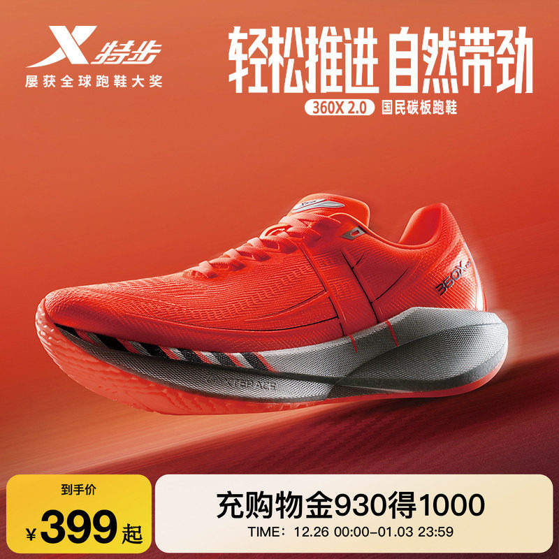 特步360X2.0丨国民碳板跑鞋秋冬运动鞋减震男子专业训练跑步鞋女